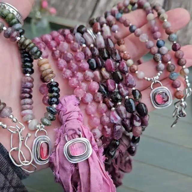 Hand knotted, intentionally made gemstone malas with handcrafted pendants and handmade leather tassels. Create a custom one of kind mala for yourself!