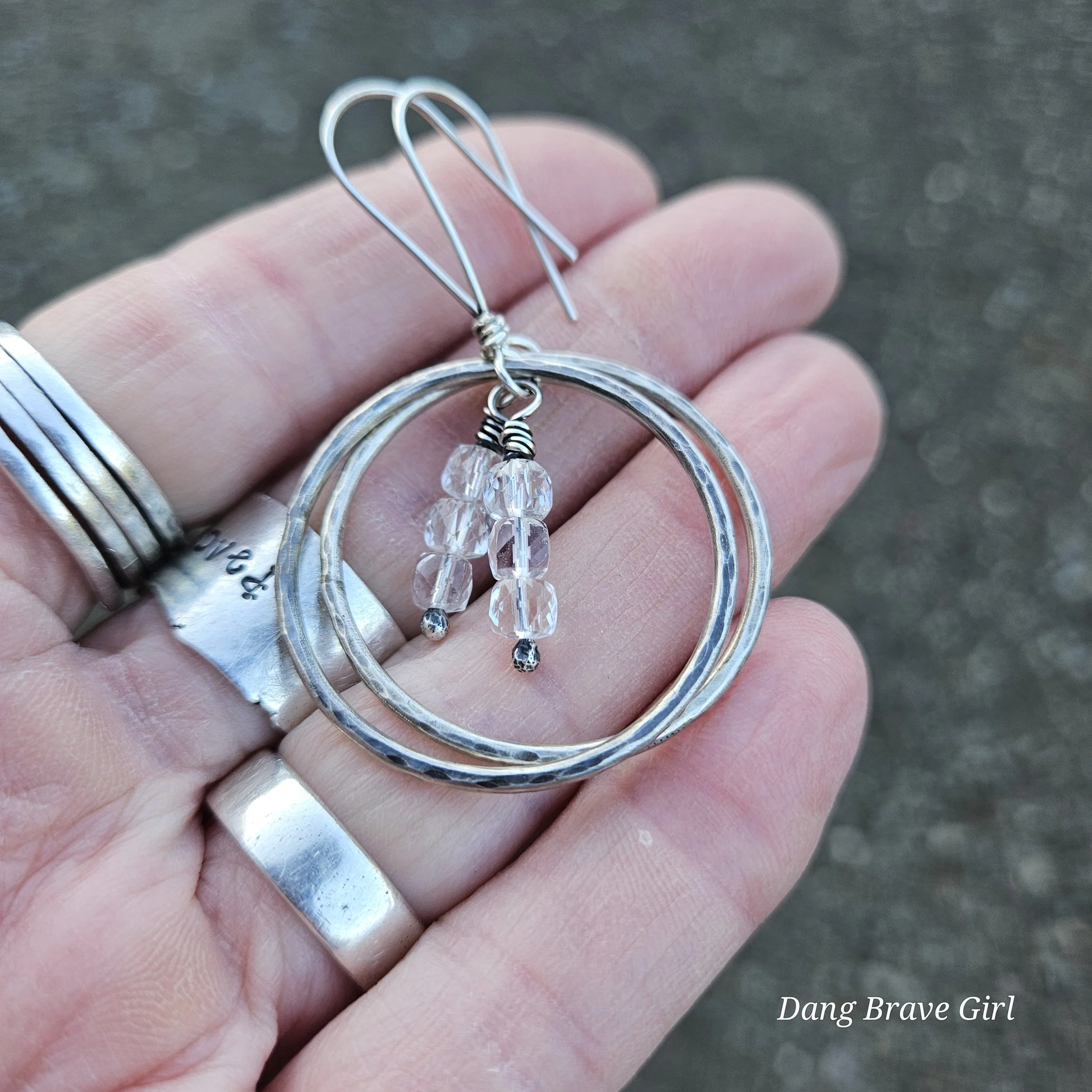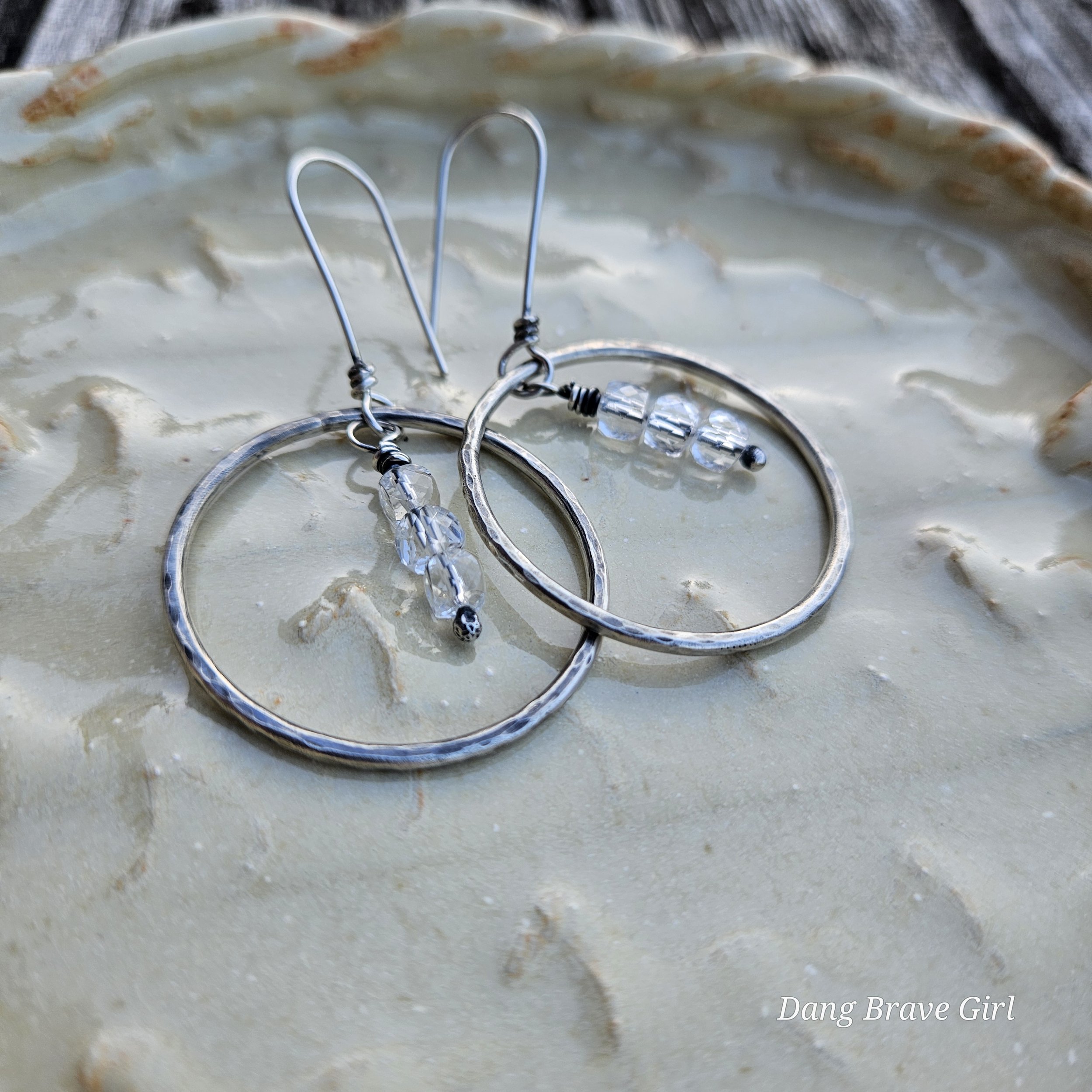 They measure 1” wide, are 1 3/4” tall and with the sterling silver ear wires, the total drop is 2 3/4”.
