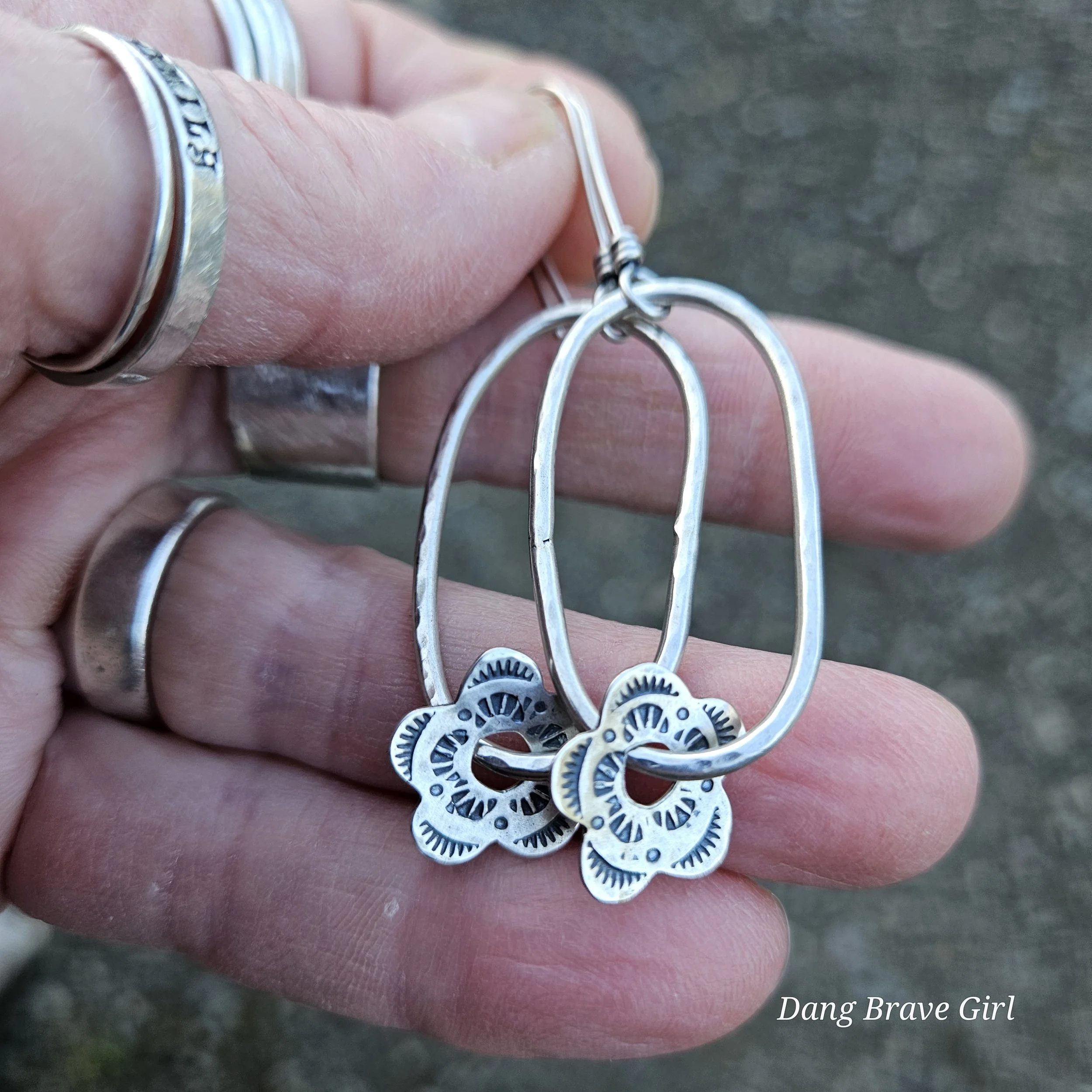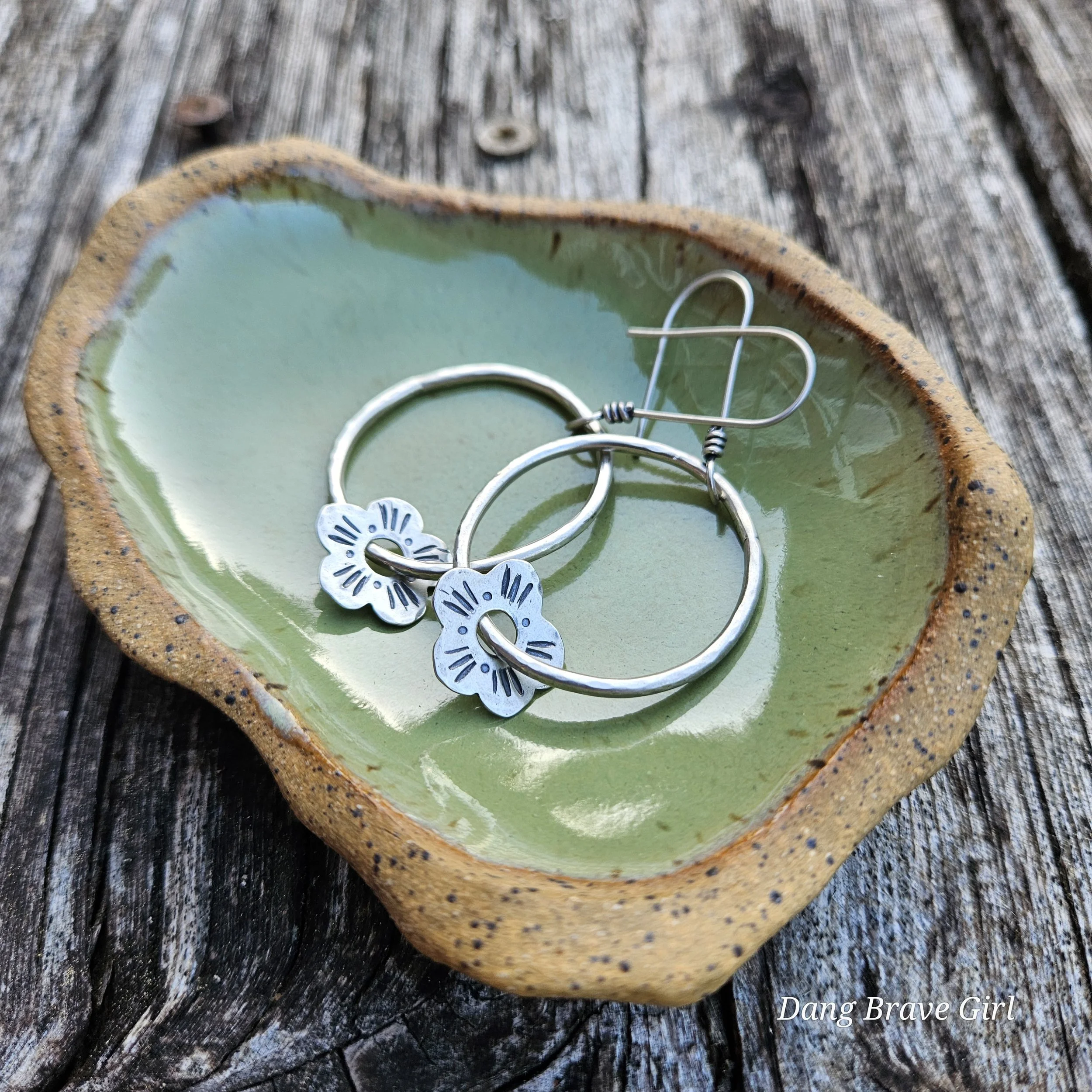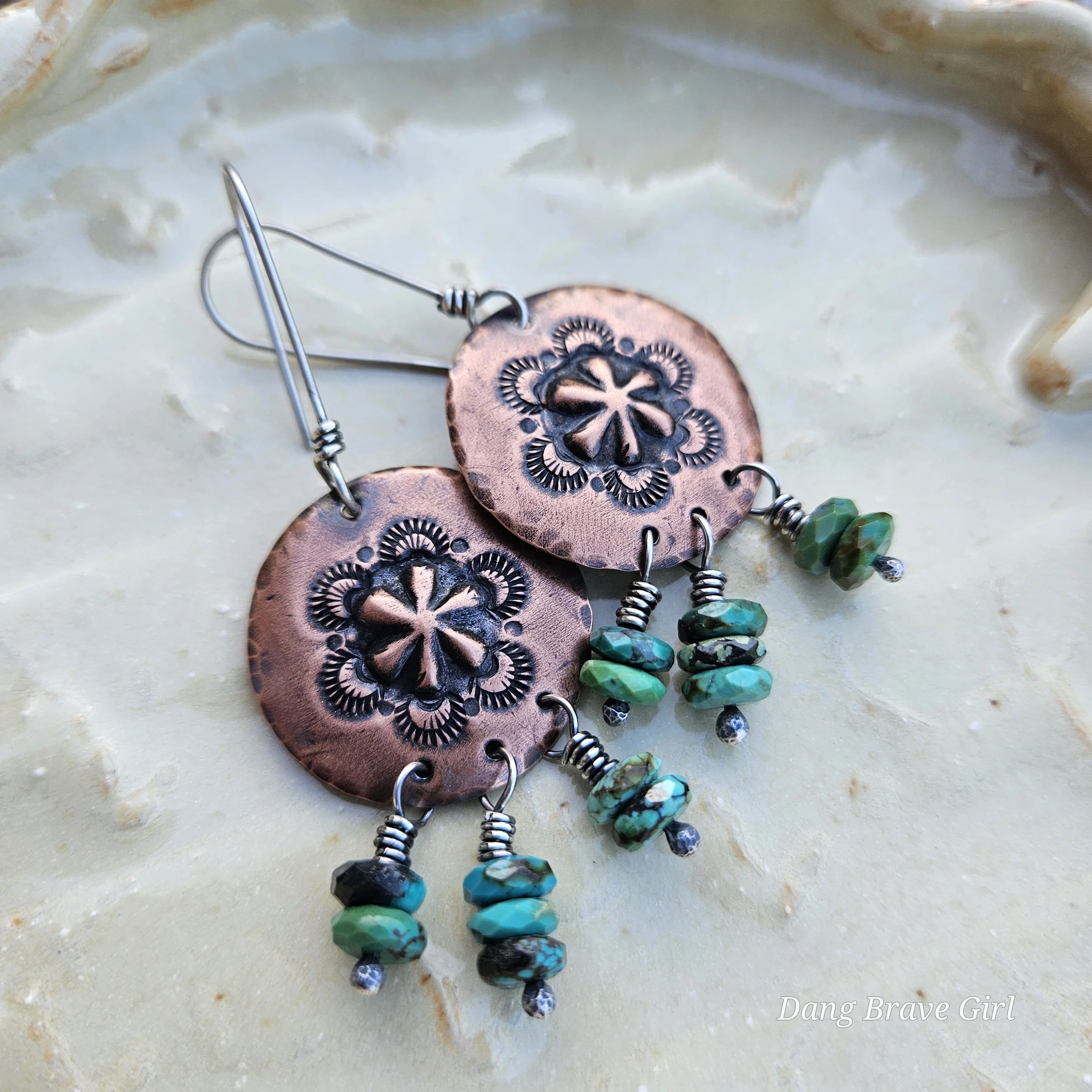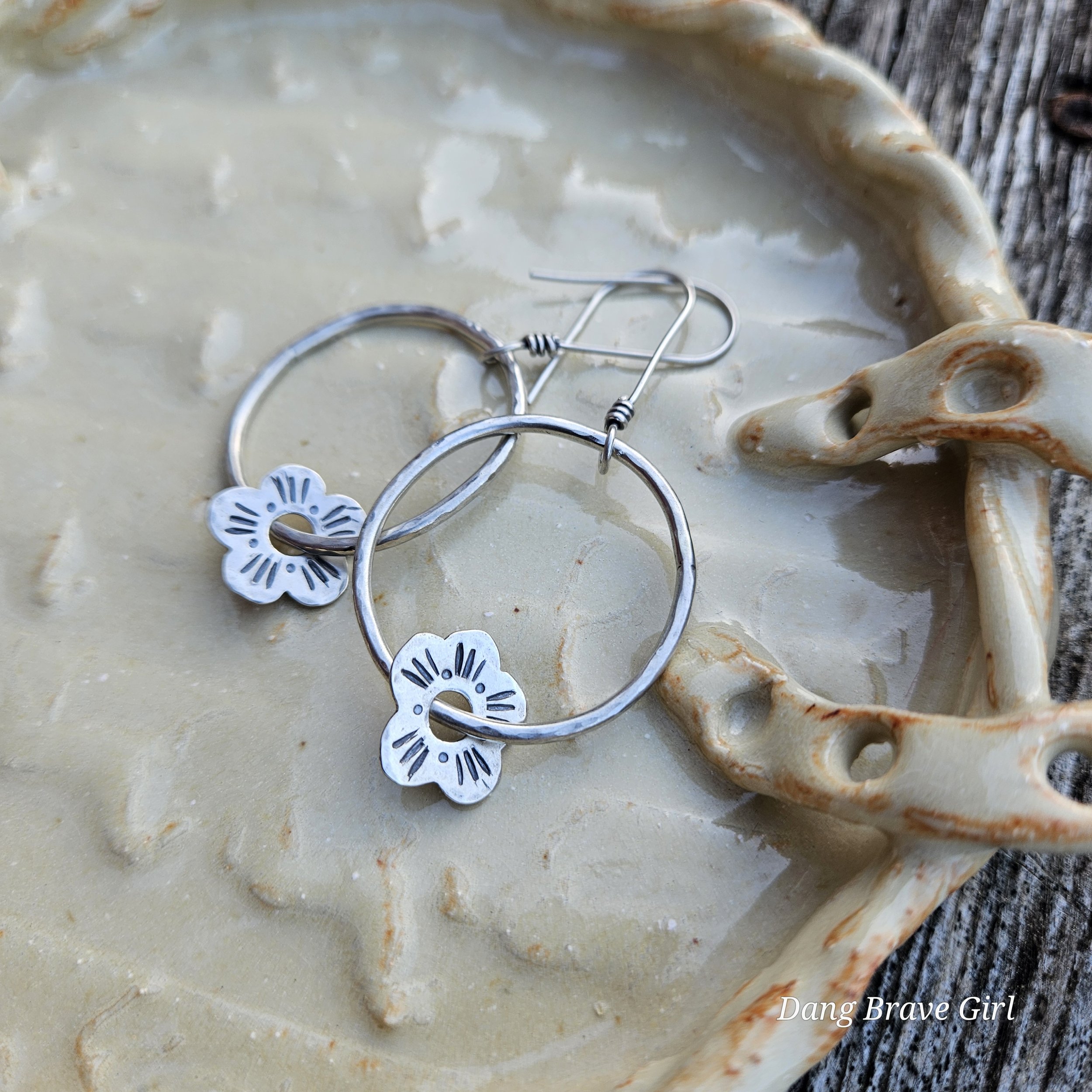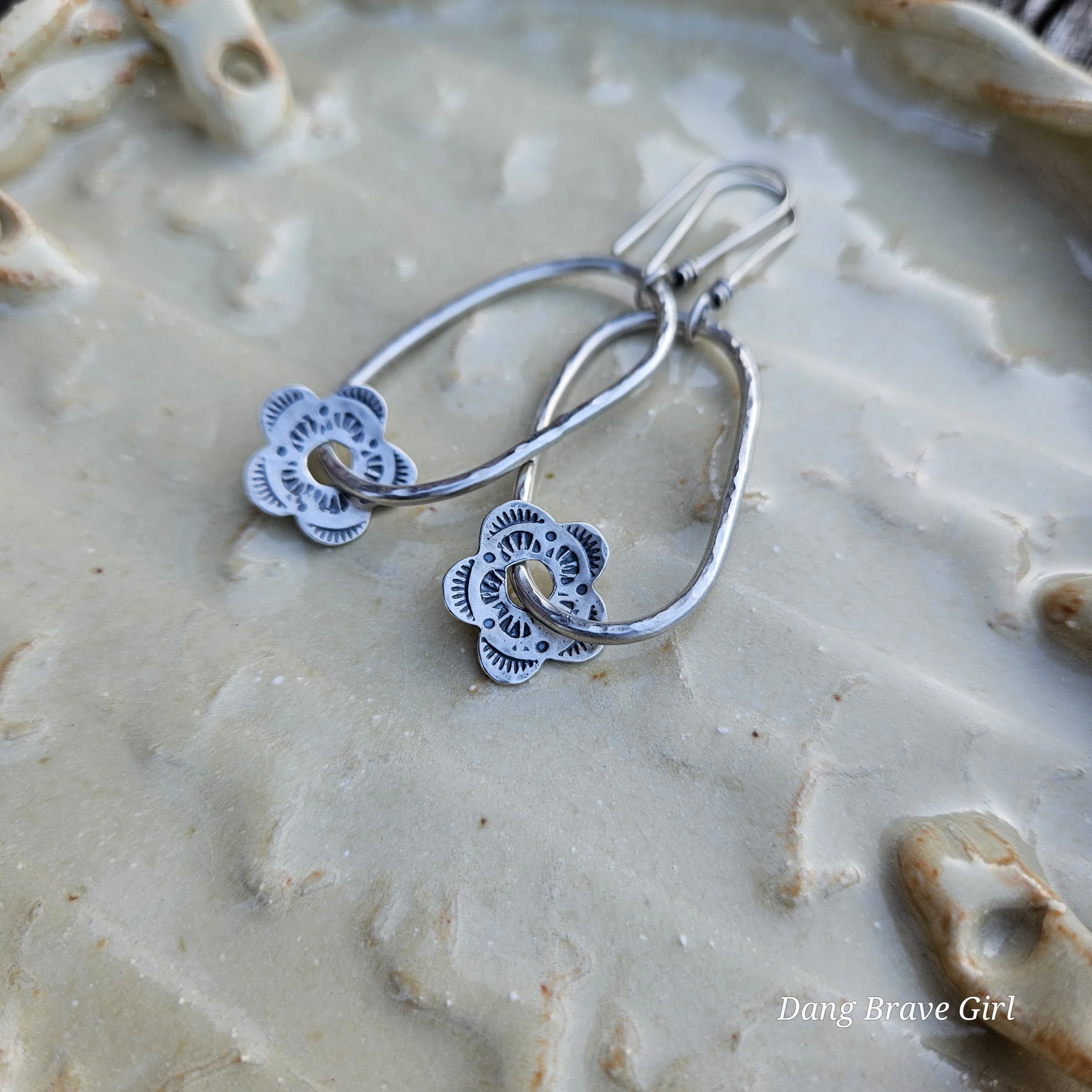 Hand stamped details, raised centers and a rich patina make these blooms pretty special.