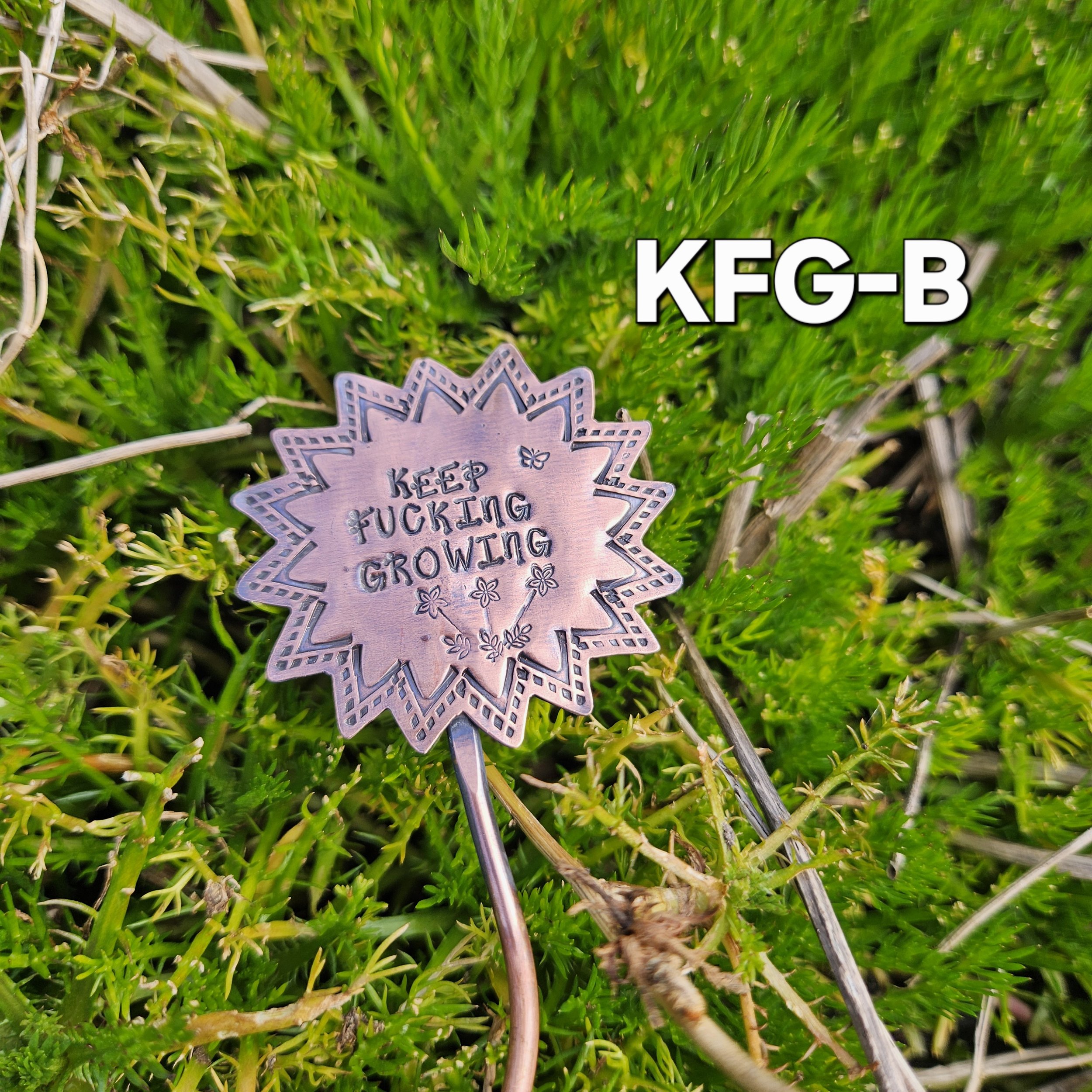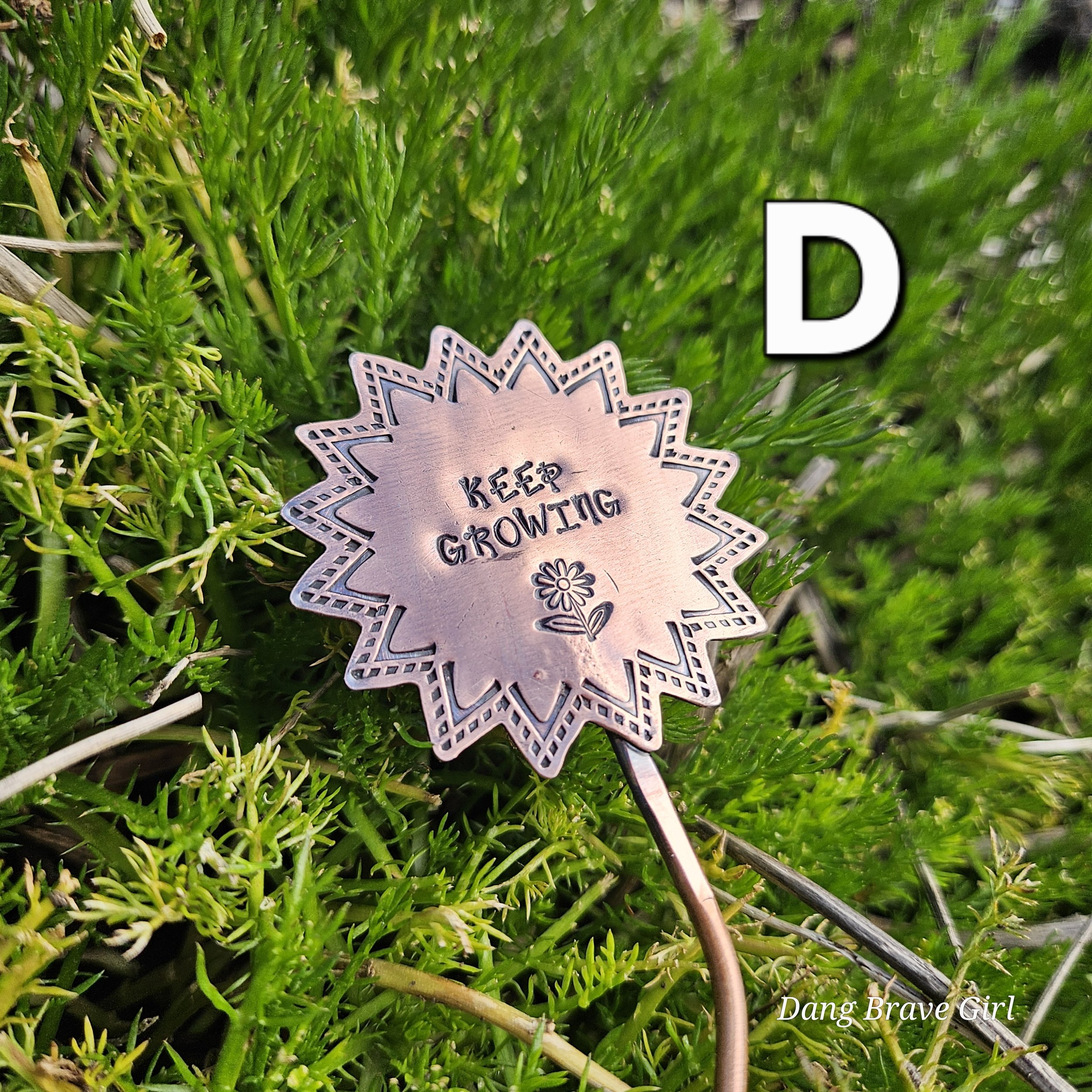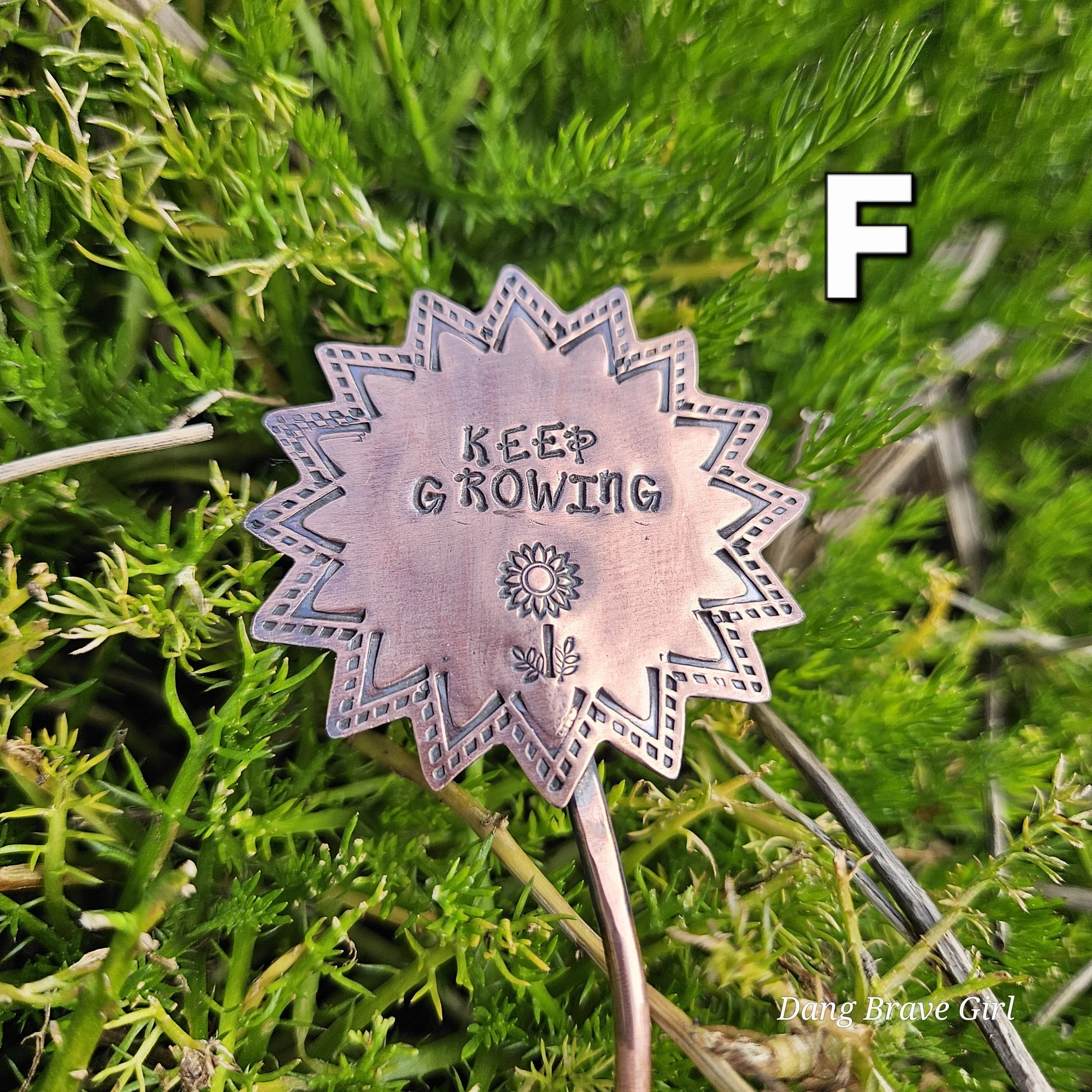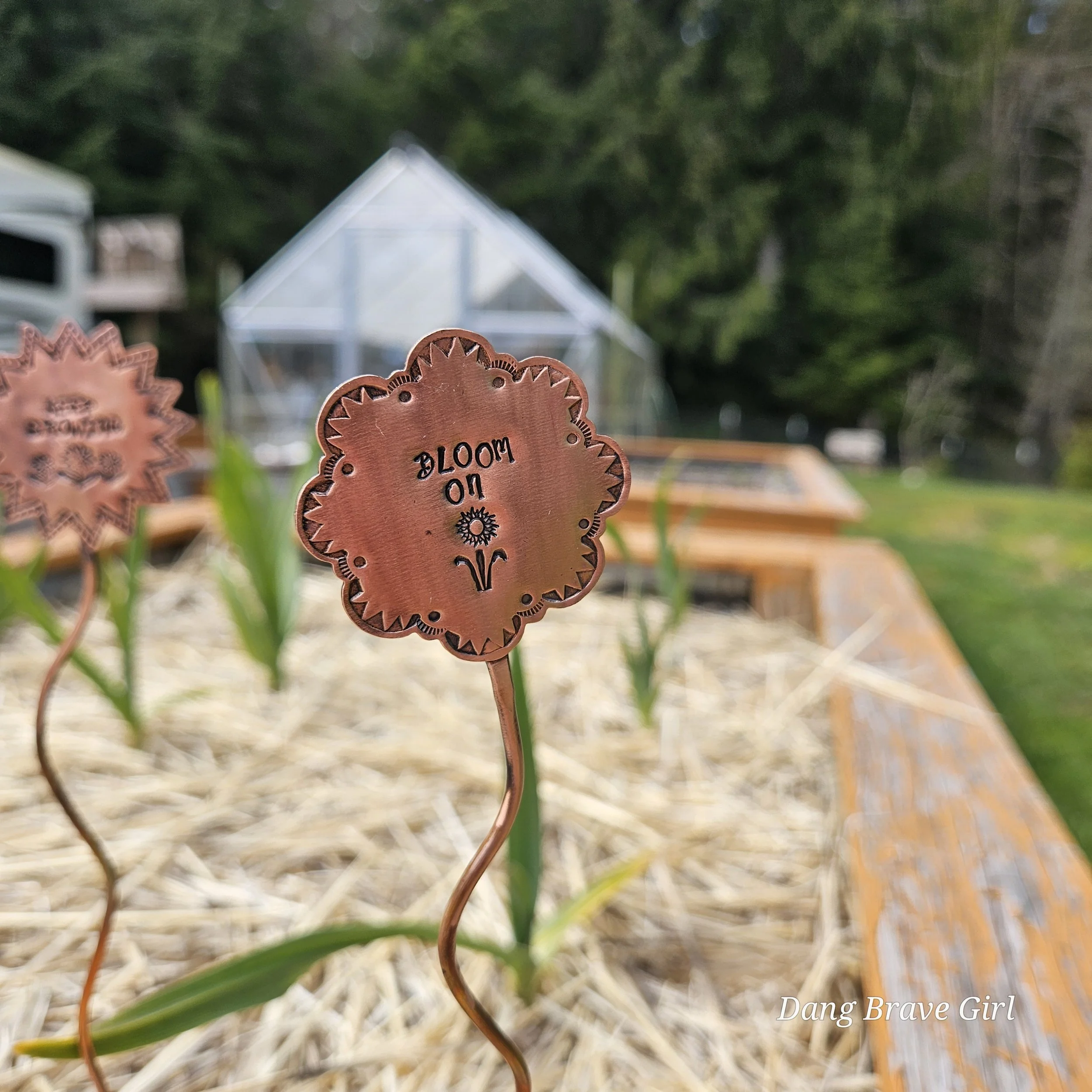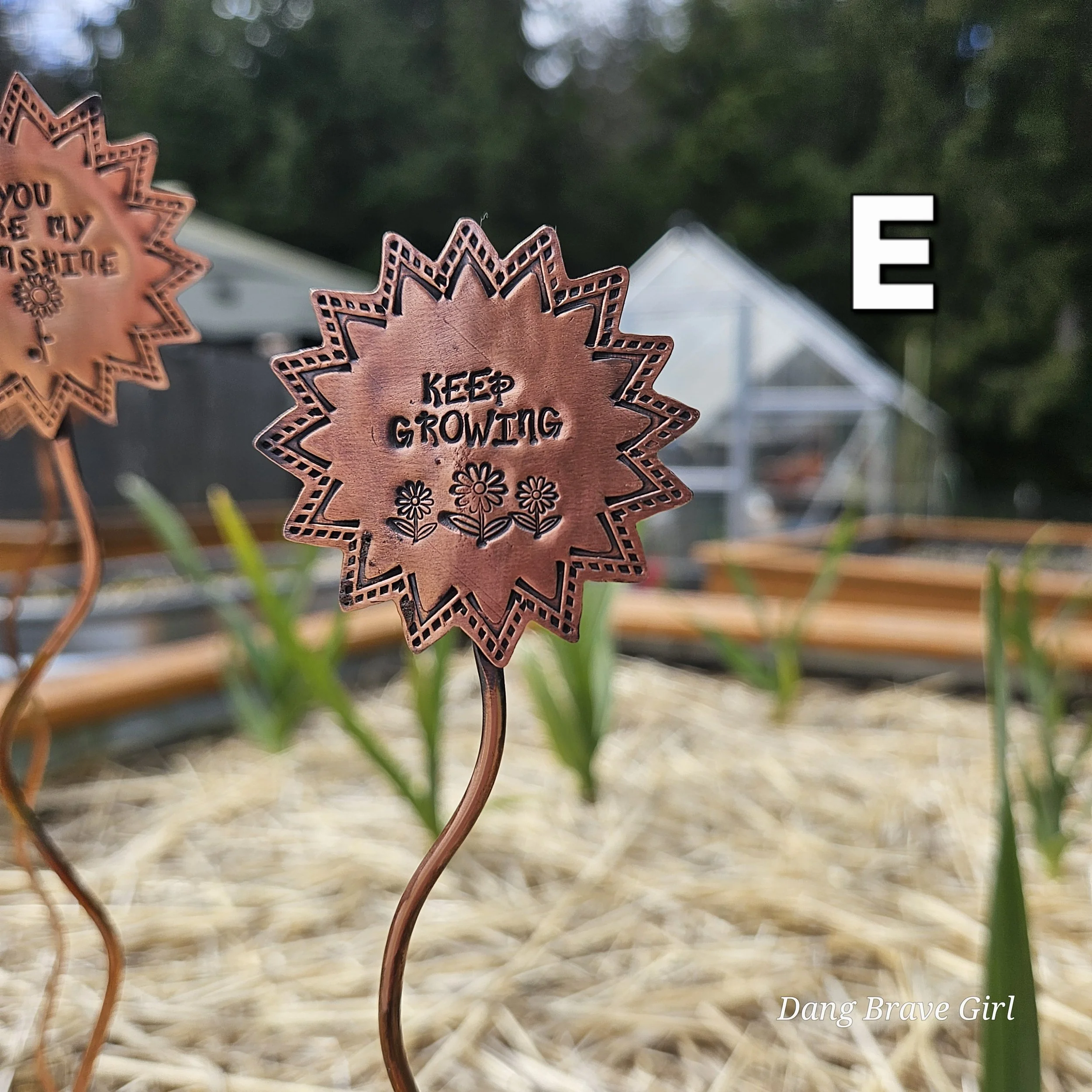 They are made with copper, detailed with sweet messages and sawed into sun and flower shapes. The tops are securely soldered to the copper ‘stems’ for a well built and long lasting garden adornment.