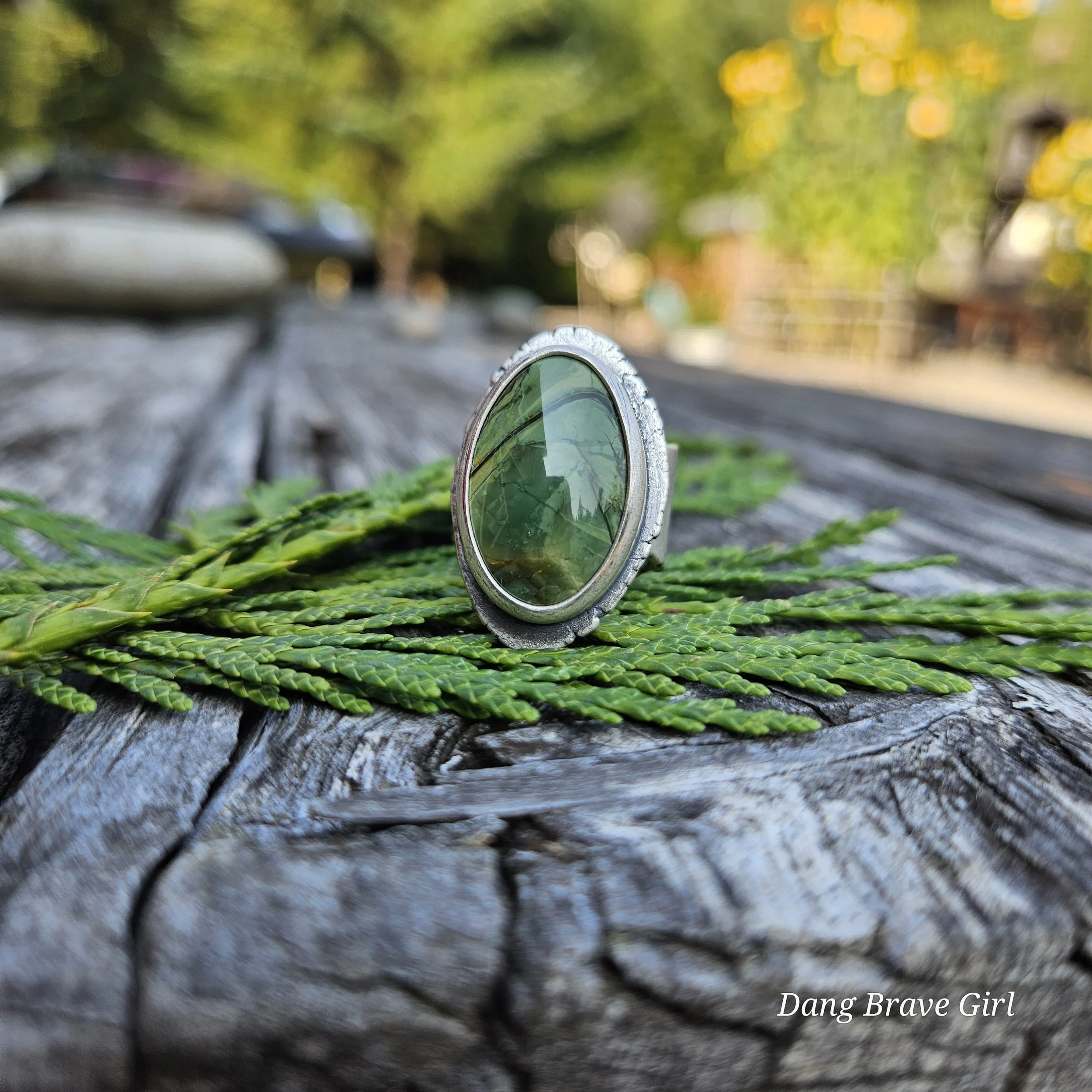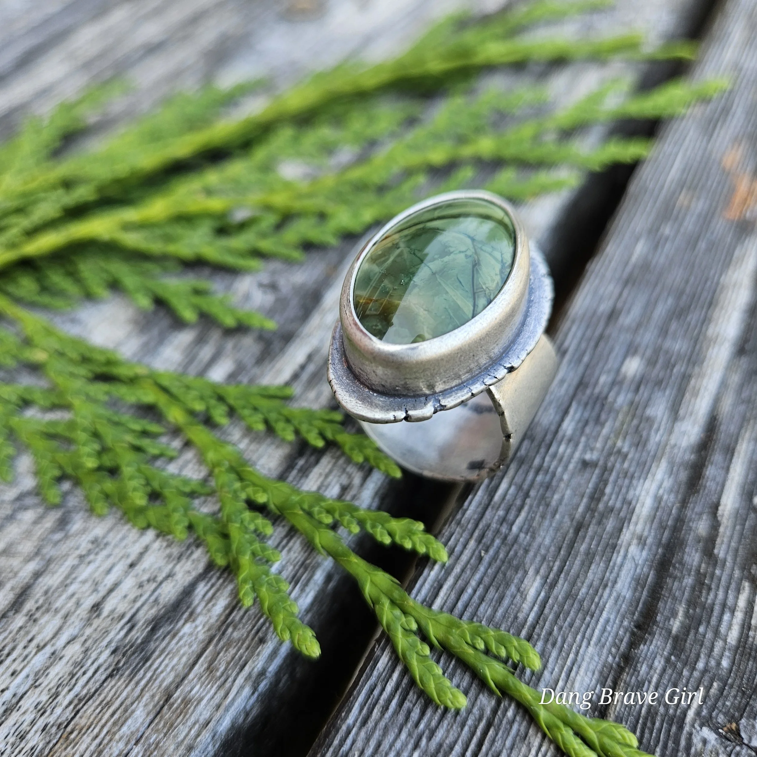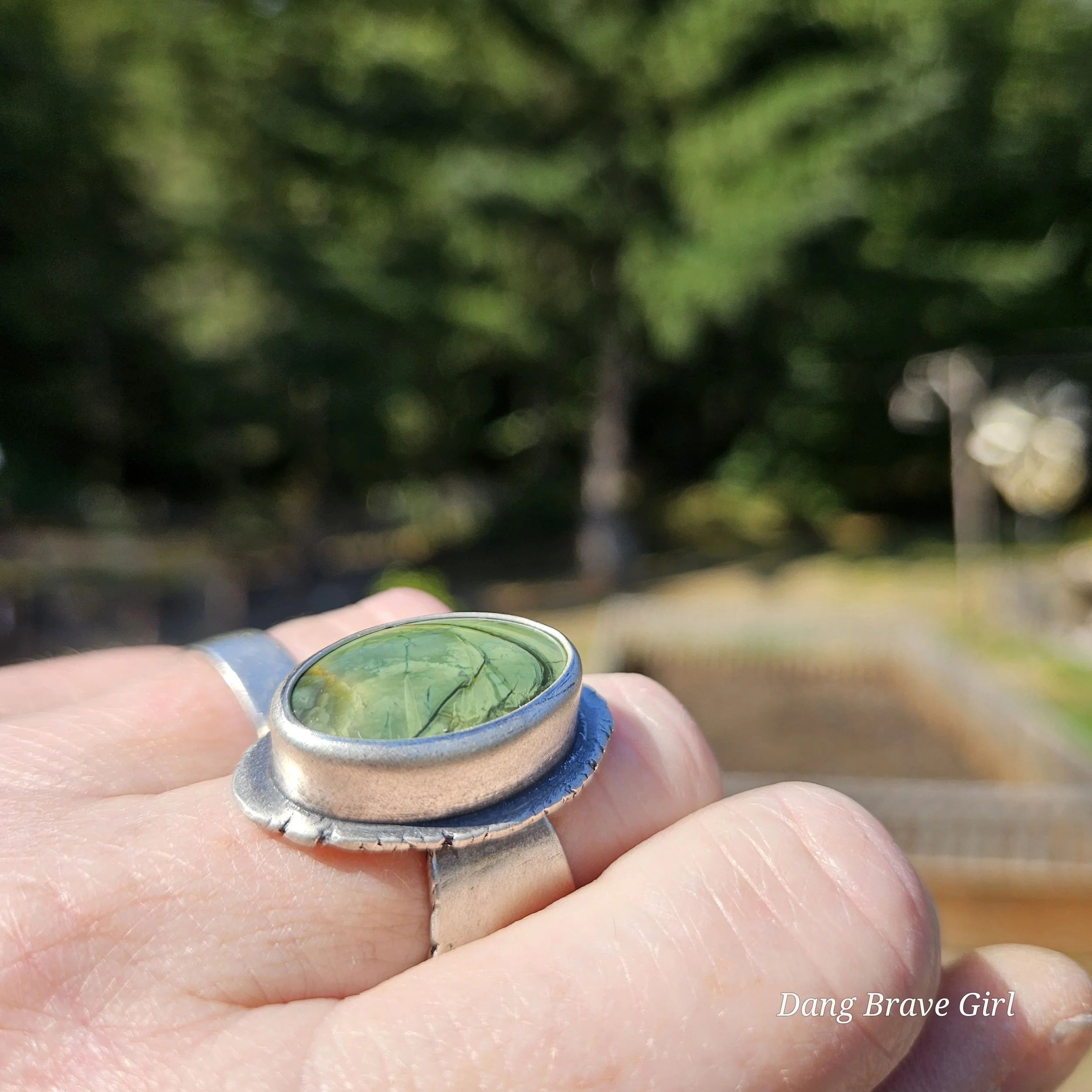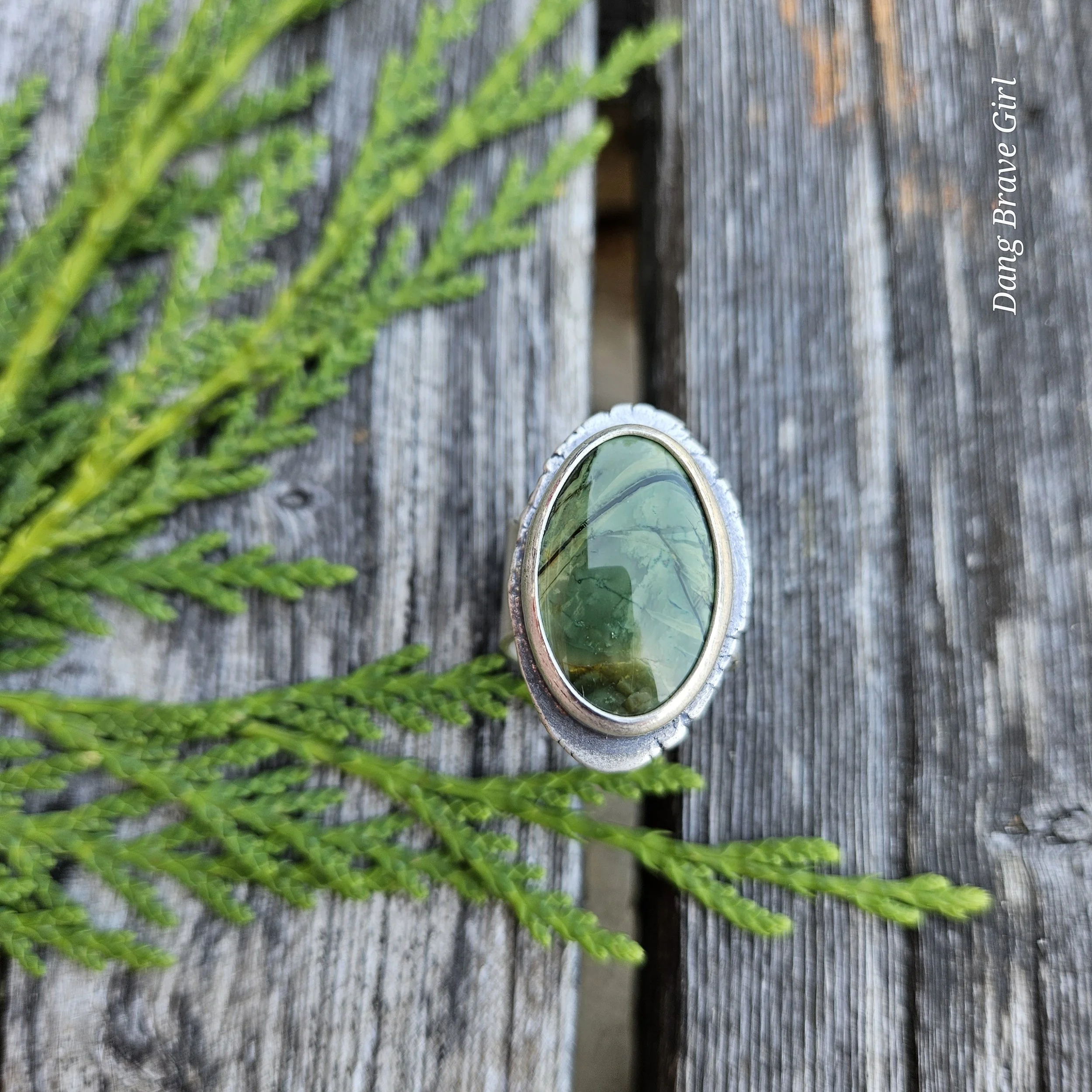 The ring is hand crafted with both bronze and silver…both in my 5R style of Repurposed, Recycled, Reclaimed, Redeemed and Reloved…the metals from broken jewelry, vintage silverware, scraps of my work…it’s all melted down and made lovable again.