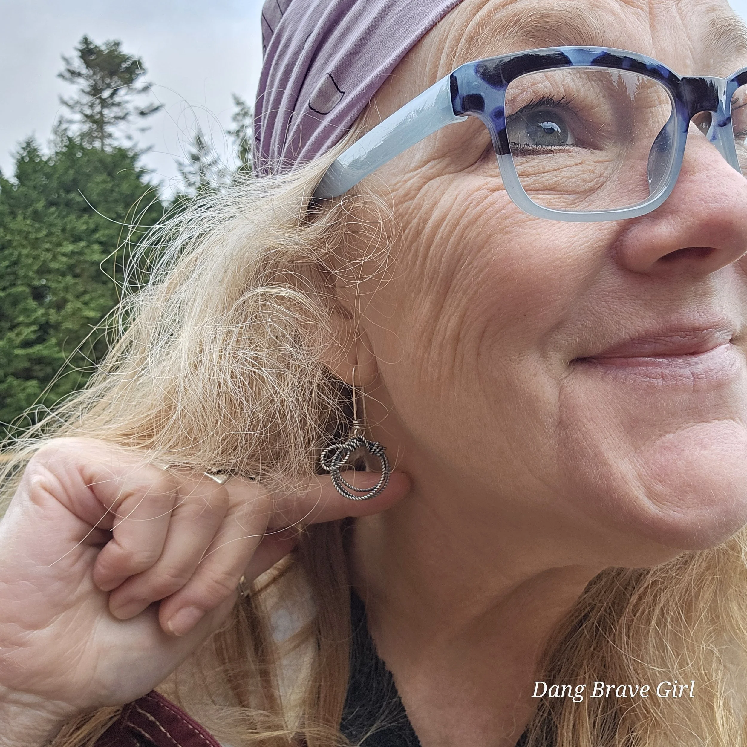 These lightweight earrings measure approximately (each pair is one of a kind) 1” and come with handcrafted sterling ear wires.
