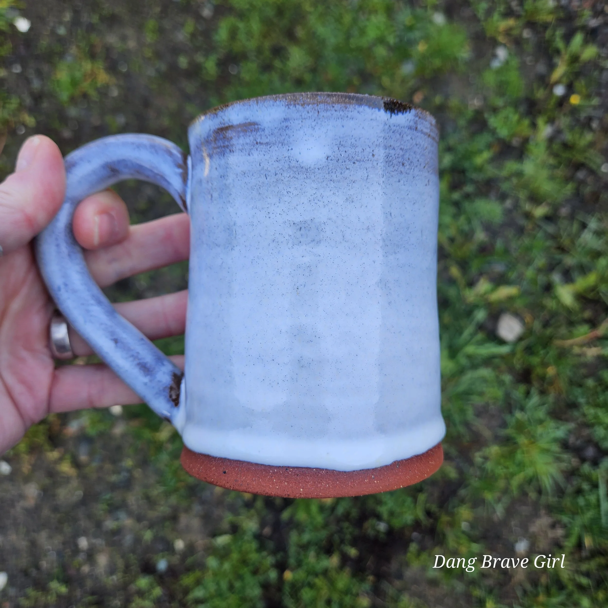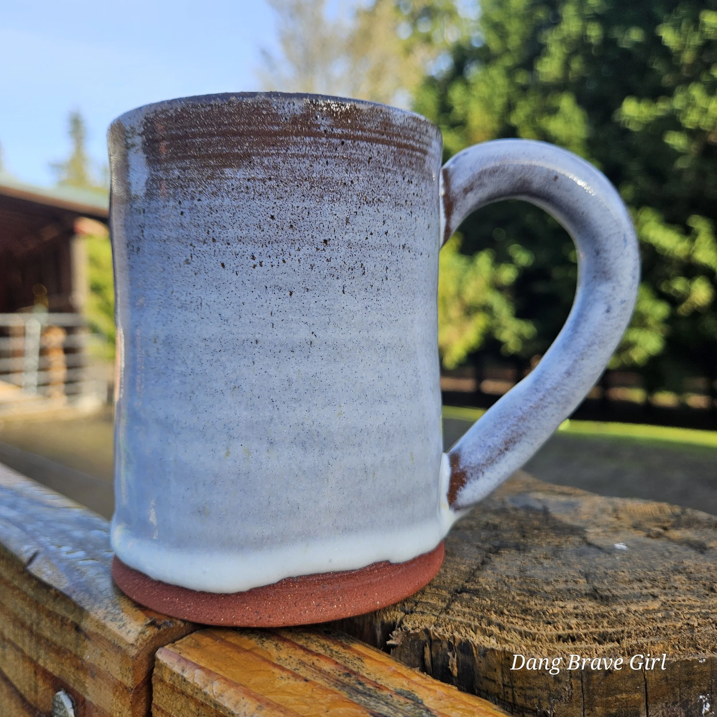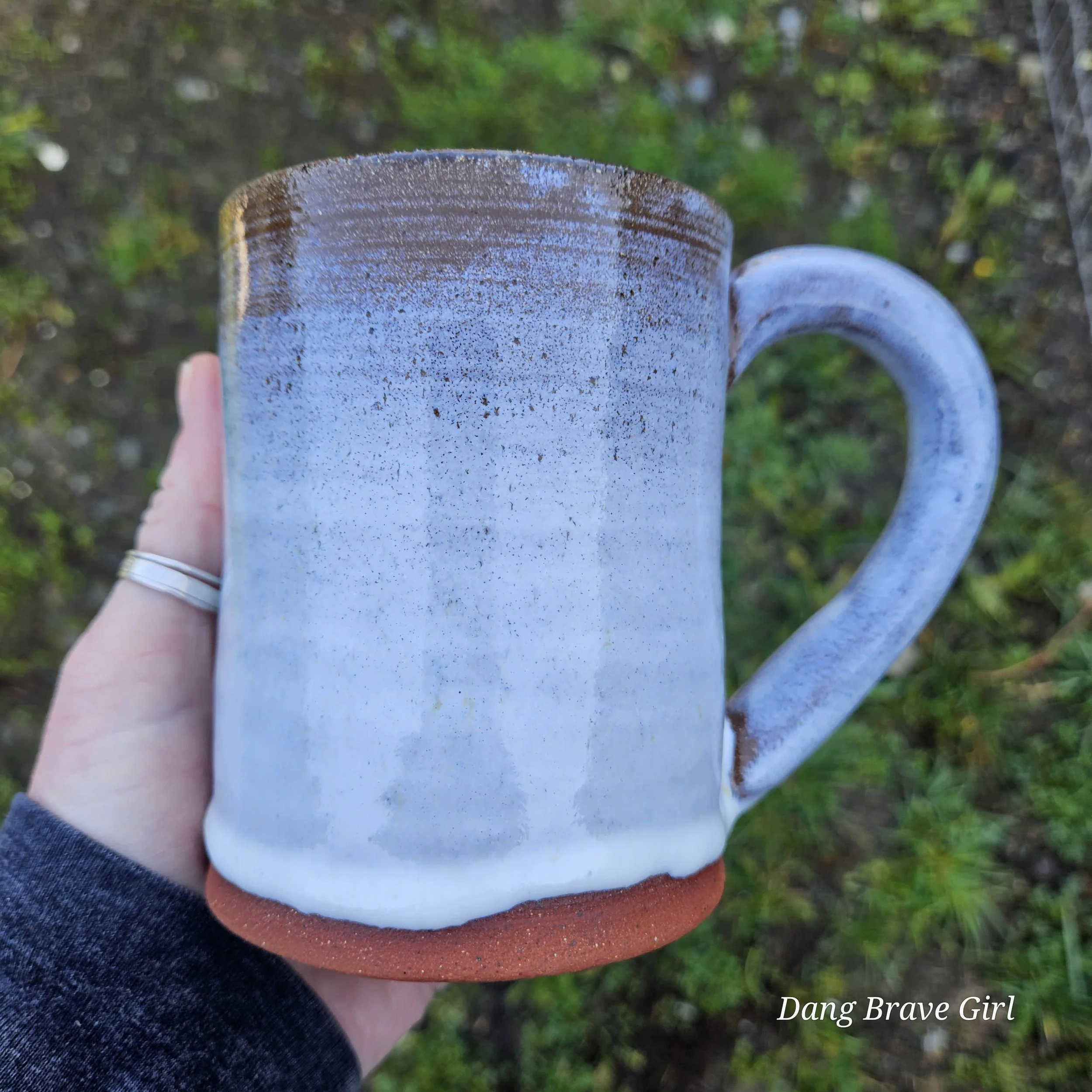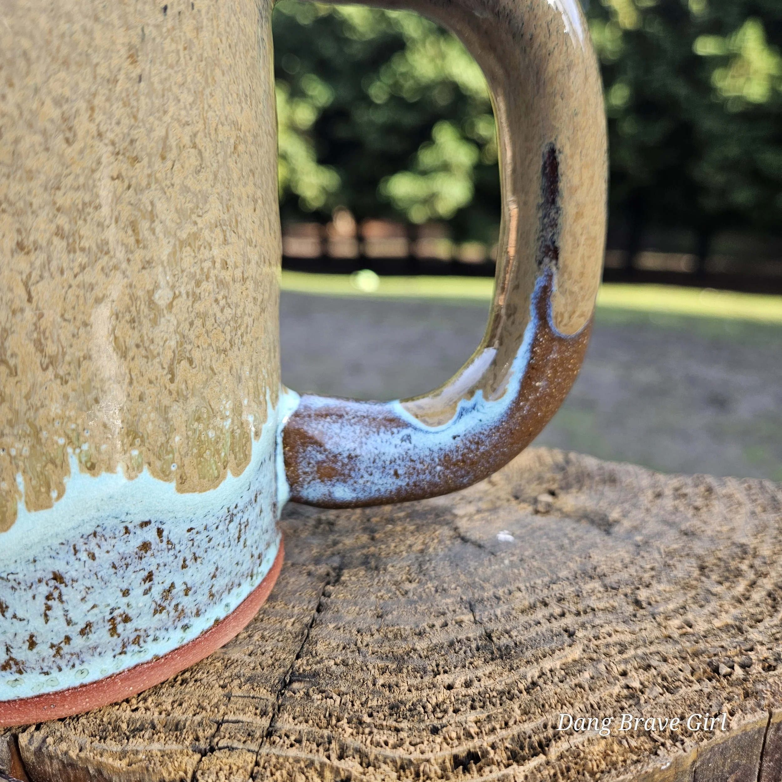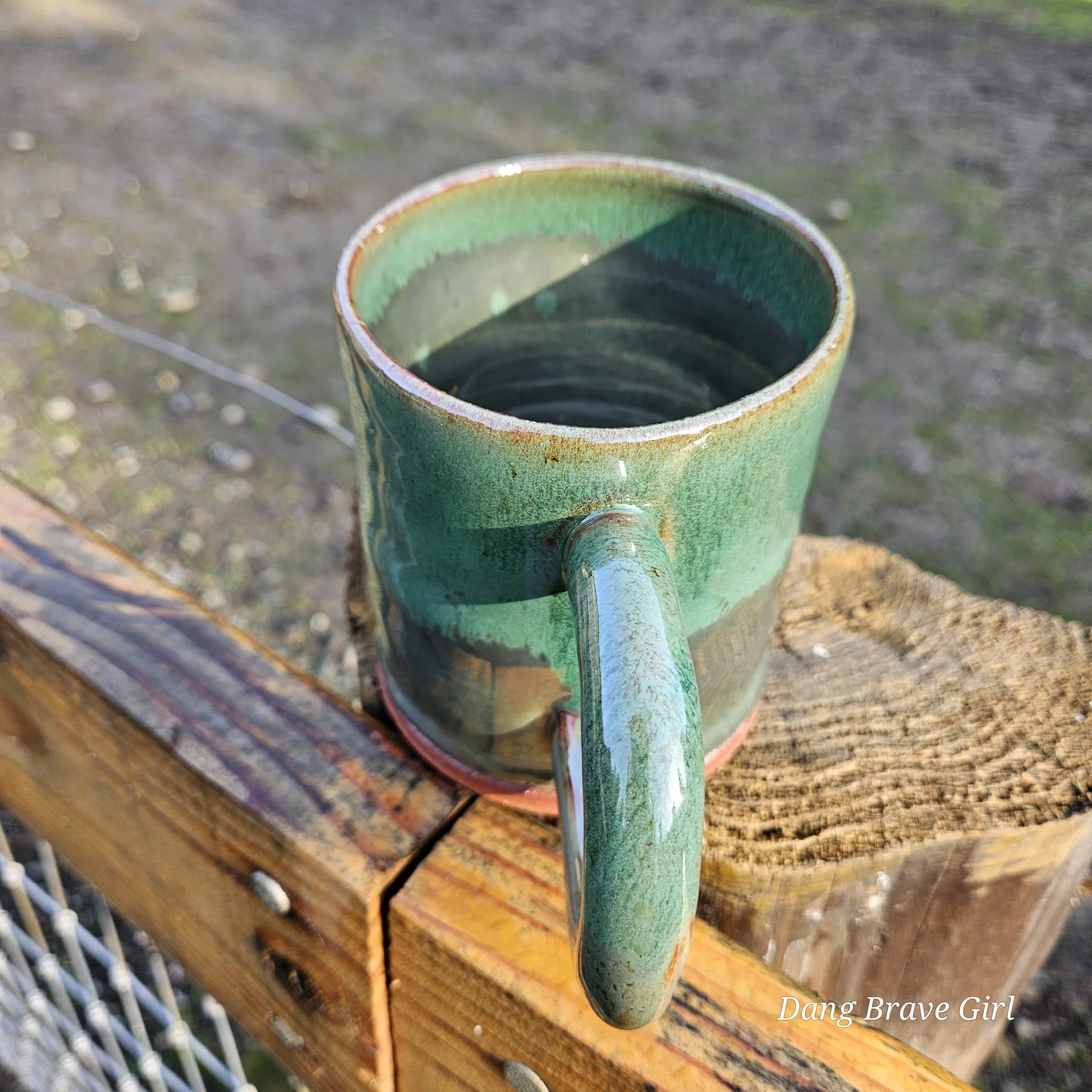 Handmade by the DBH with Oregon Red clay and I dare you not to fall in love with these colors. The perfect glaze drip of Caribbean over Milky Clear. And don’t forget to love on that great handle!