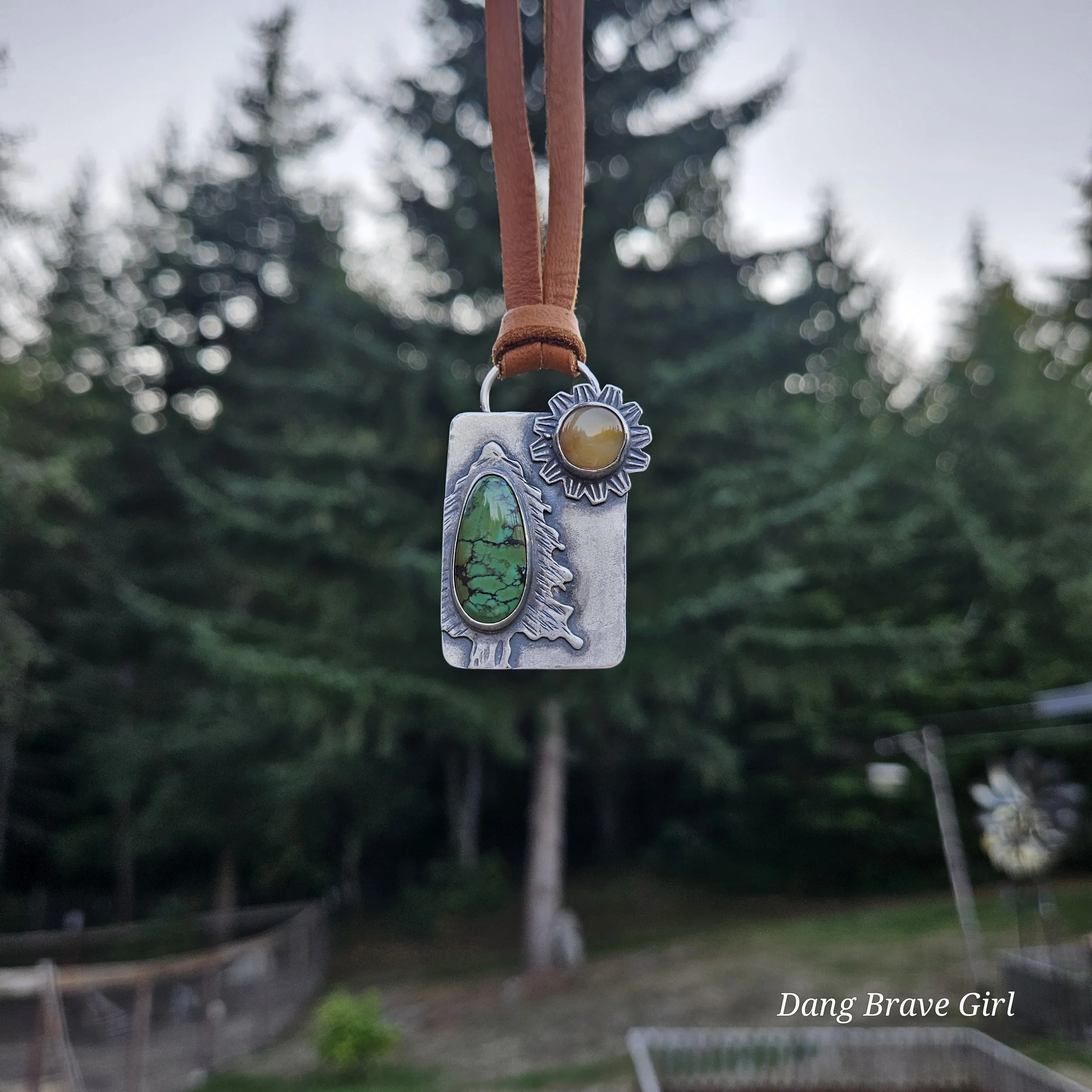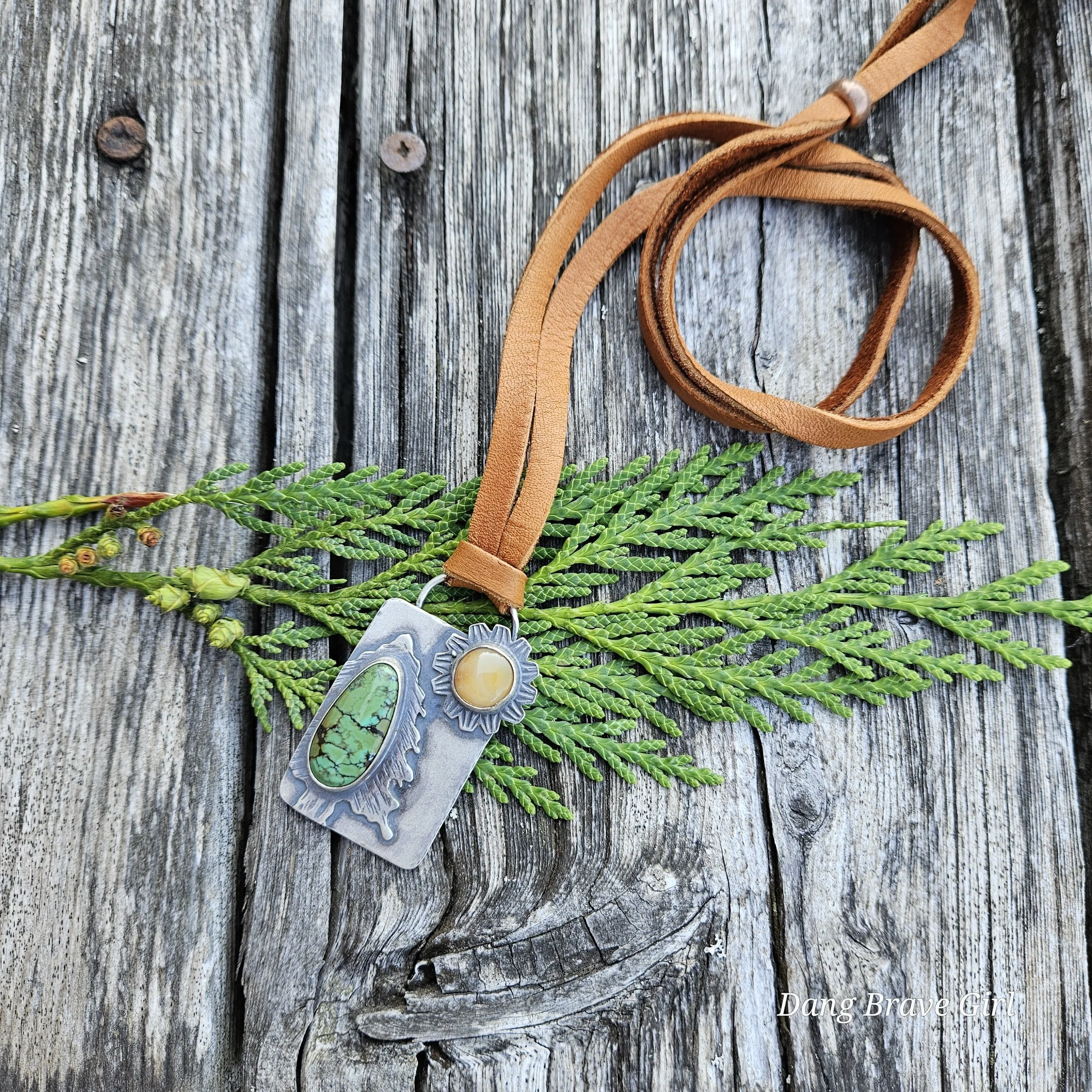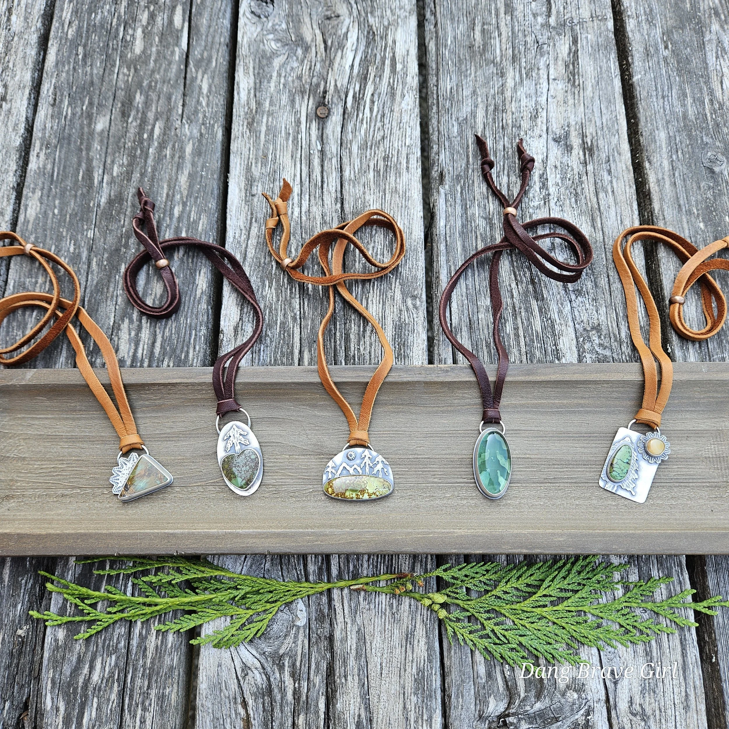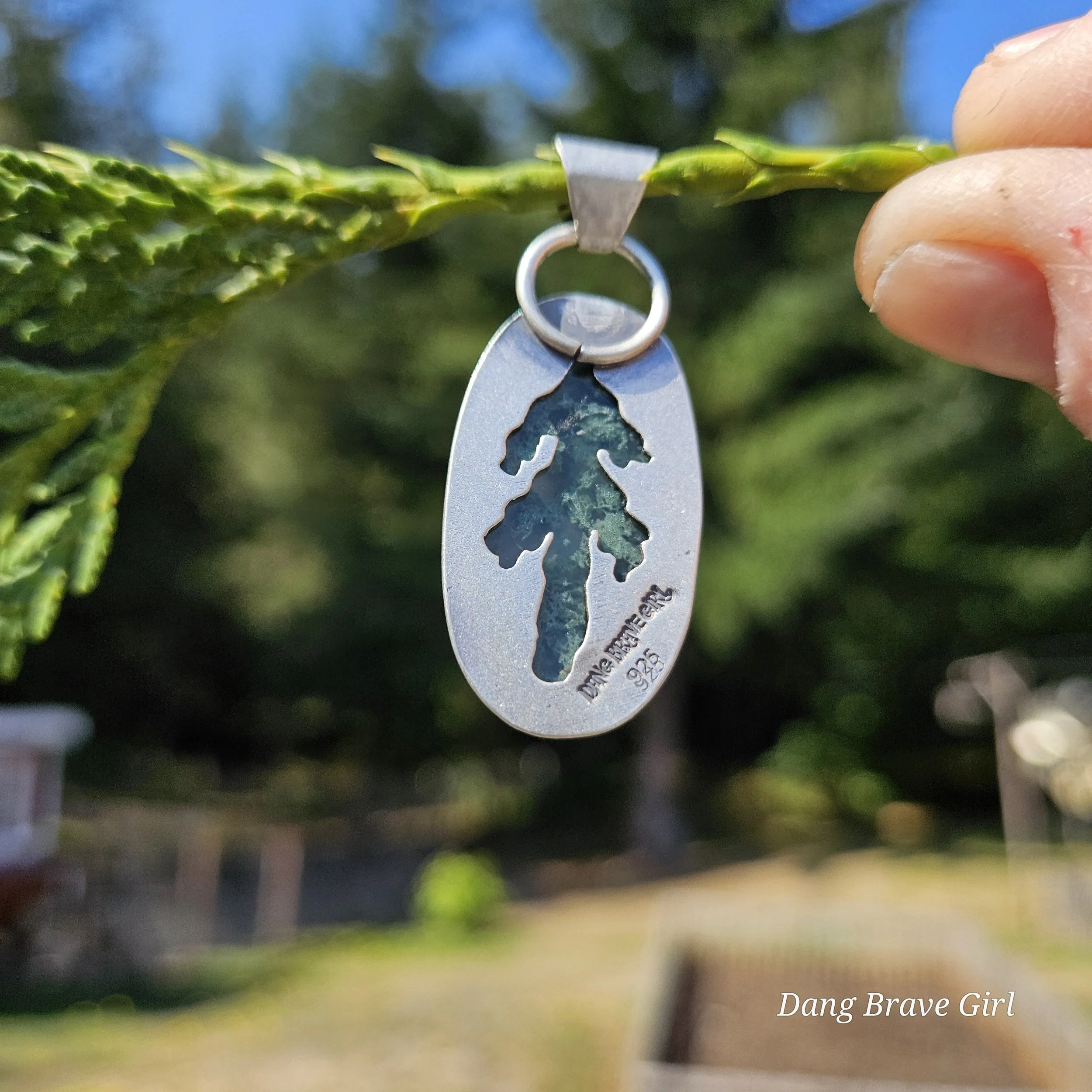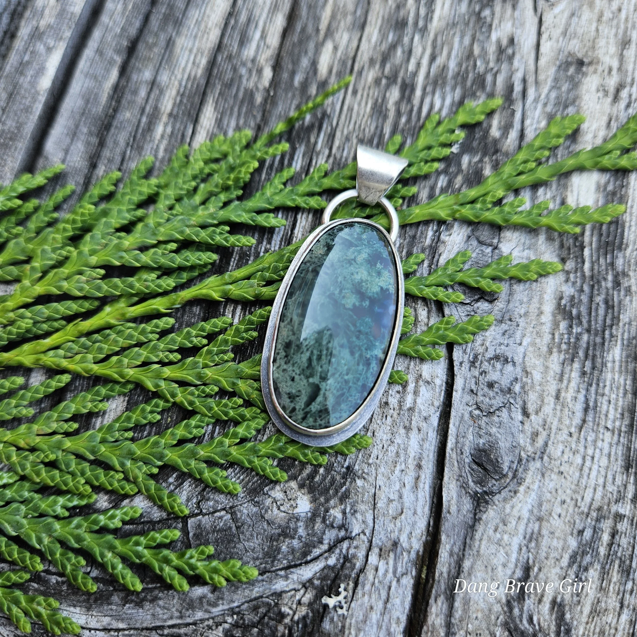 Measures almost 1 1/8” wide, is 2 1/2” tall, including the bail. Generously sized, the bail can accommodate your favorite chunky chain or leather up to 5mm. If you need a chain like the one pictured, they are available in my shop.