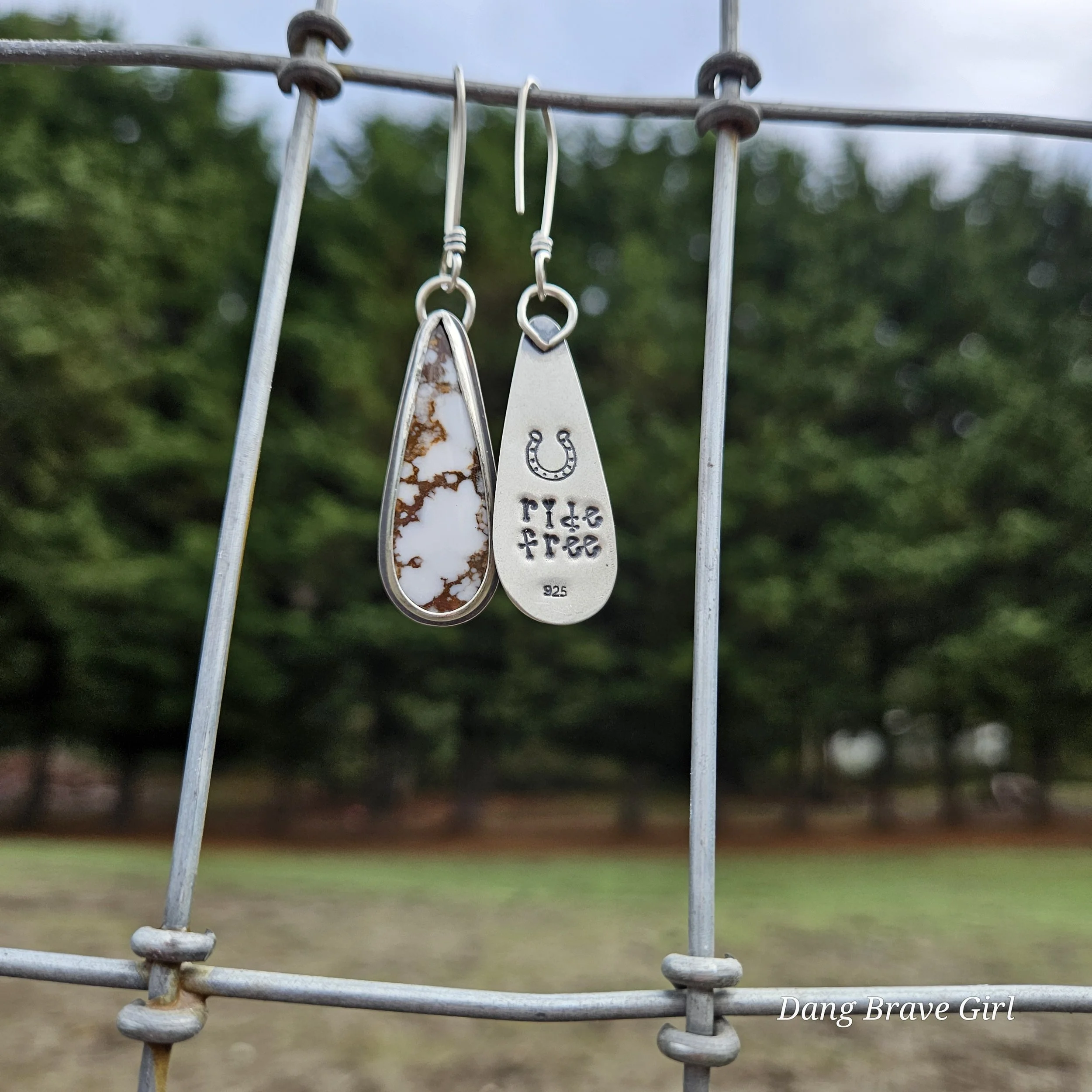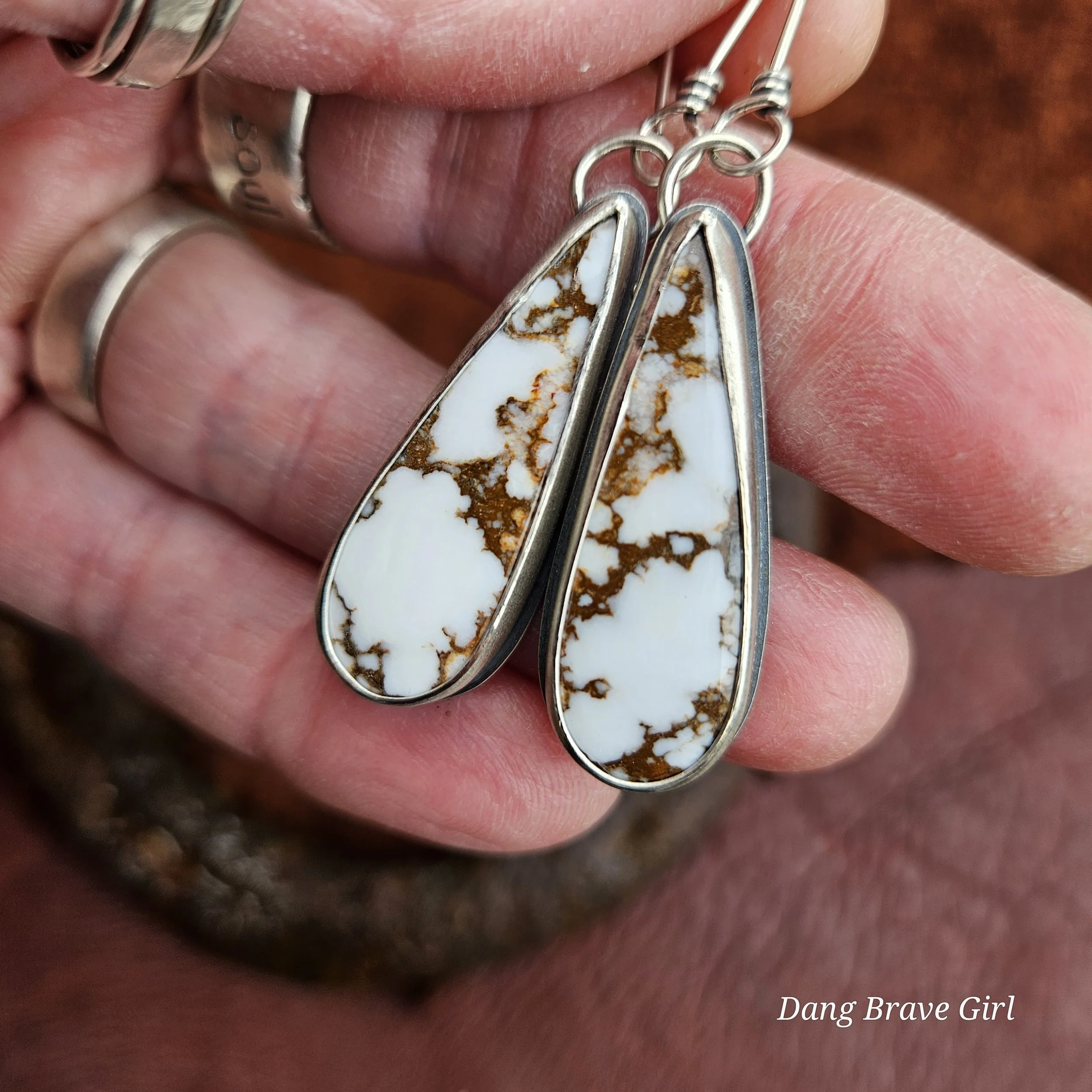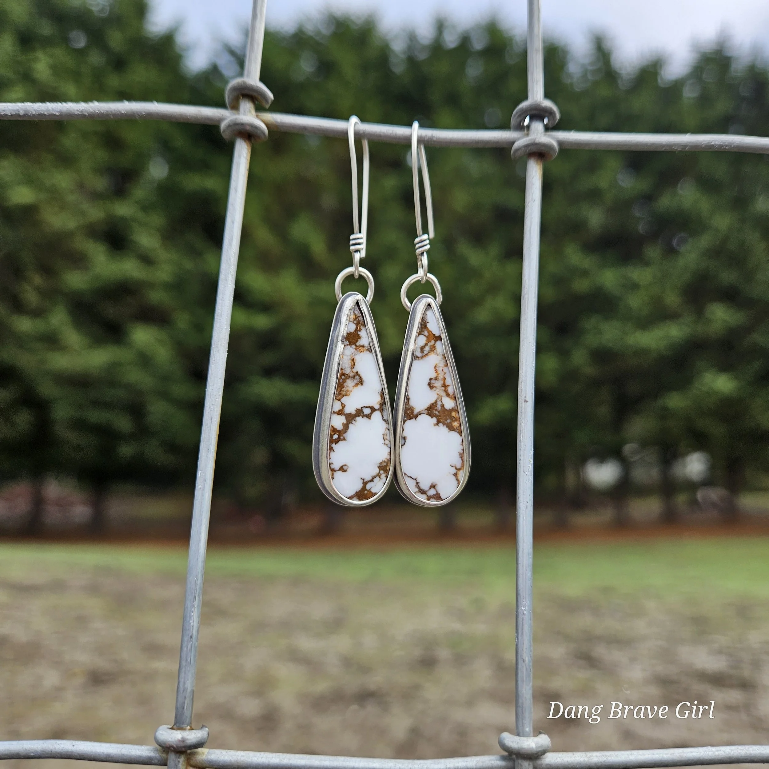 These earrings have the incredible Wildhorse stones set in fine and sterling silver. Their long teardrop shape is gorgeous and the lovely matrix make these a special pair.