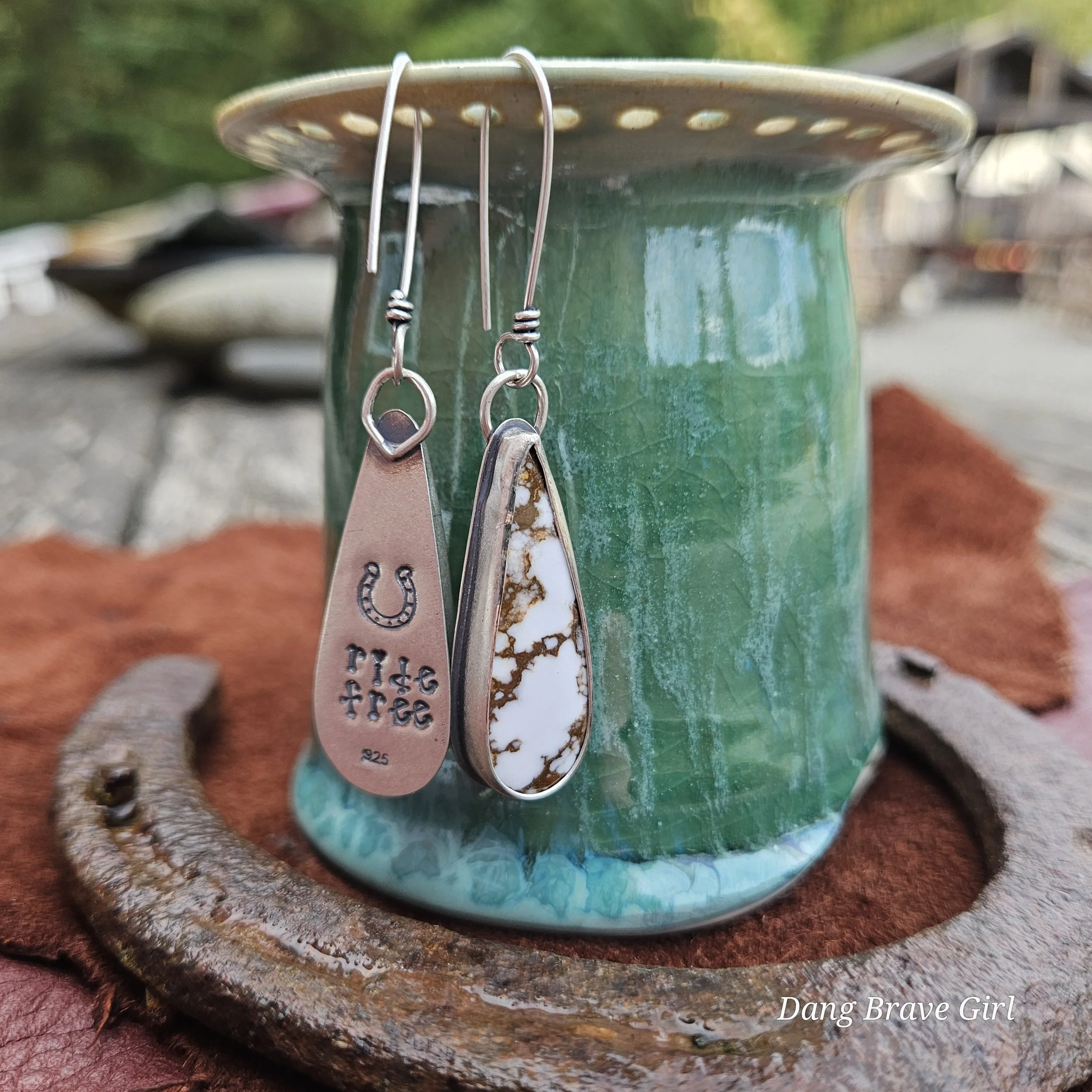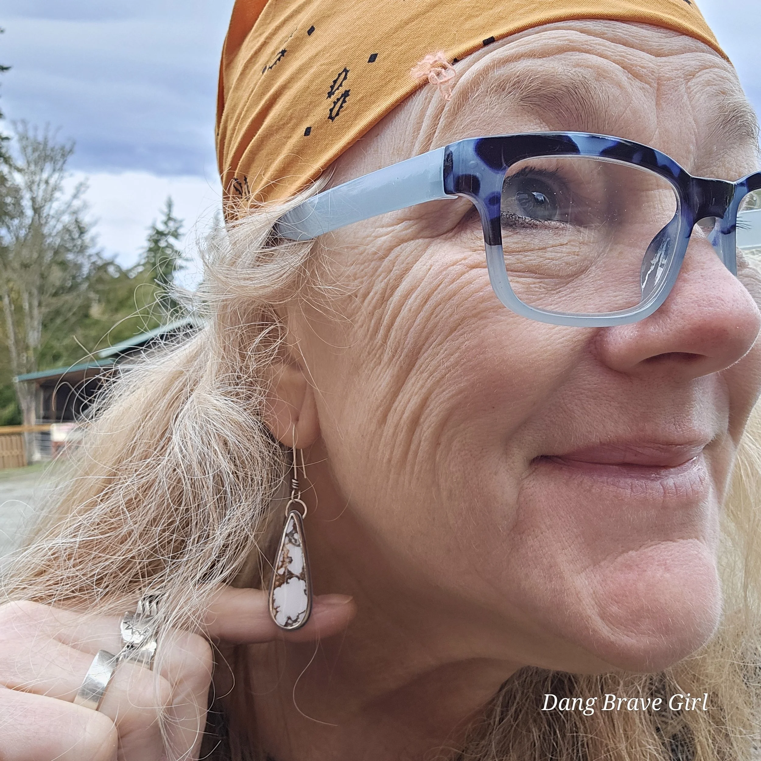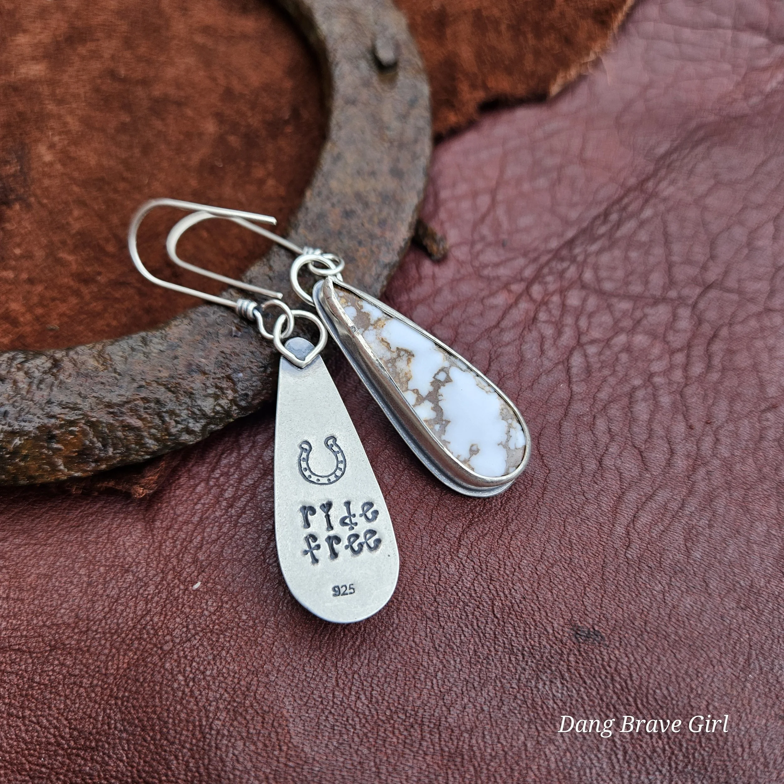 These earrings have the incredible Wildhorse stones set in fine and sterling silver. Their long teardrop shape is gorgeous and the lovely matrix make these a special pair.