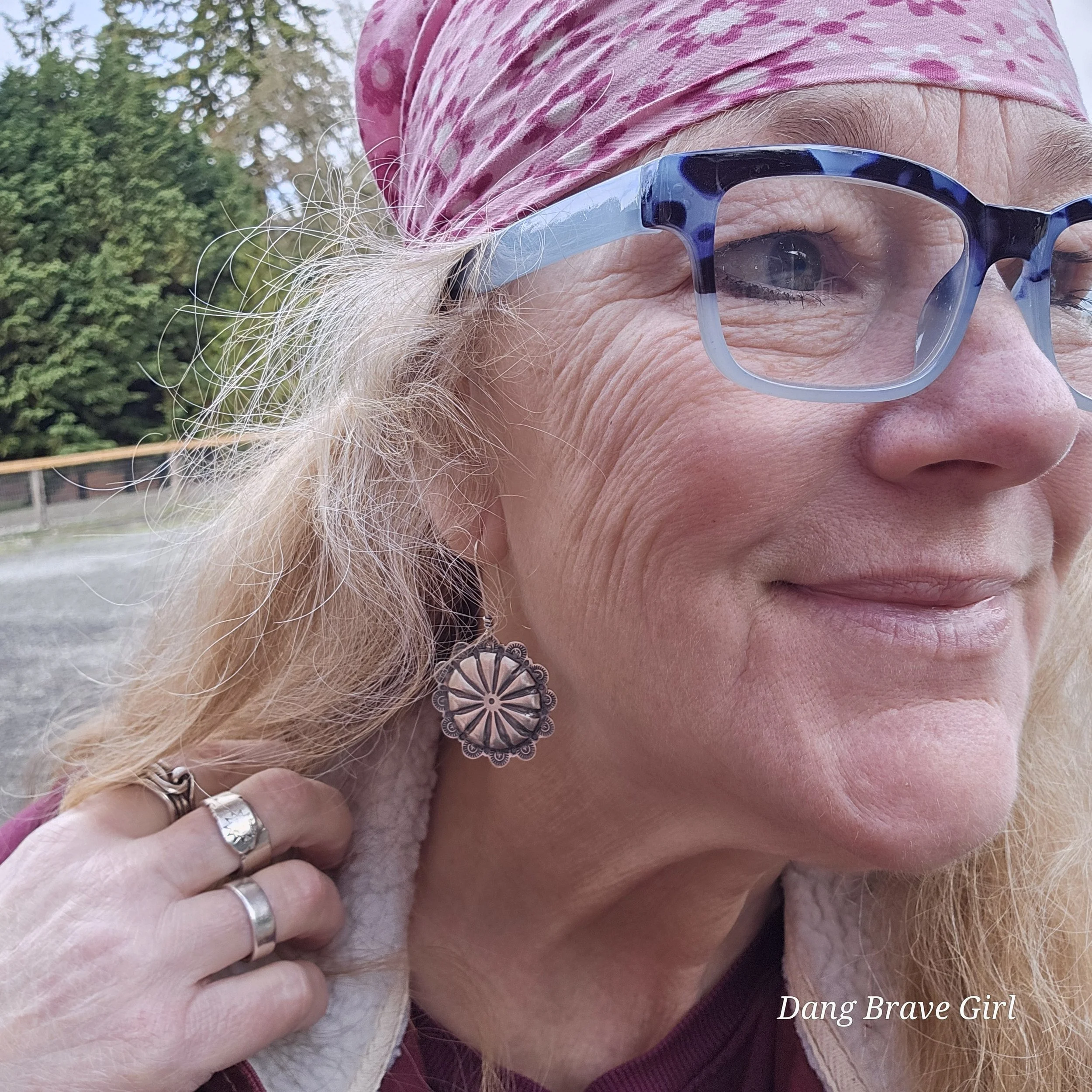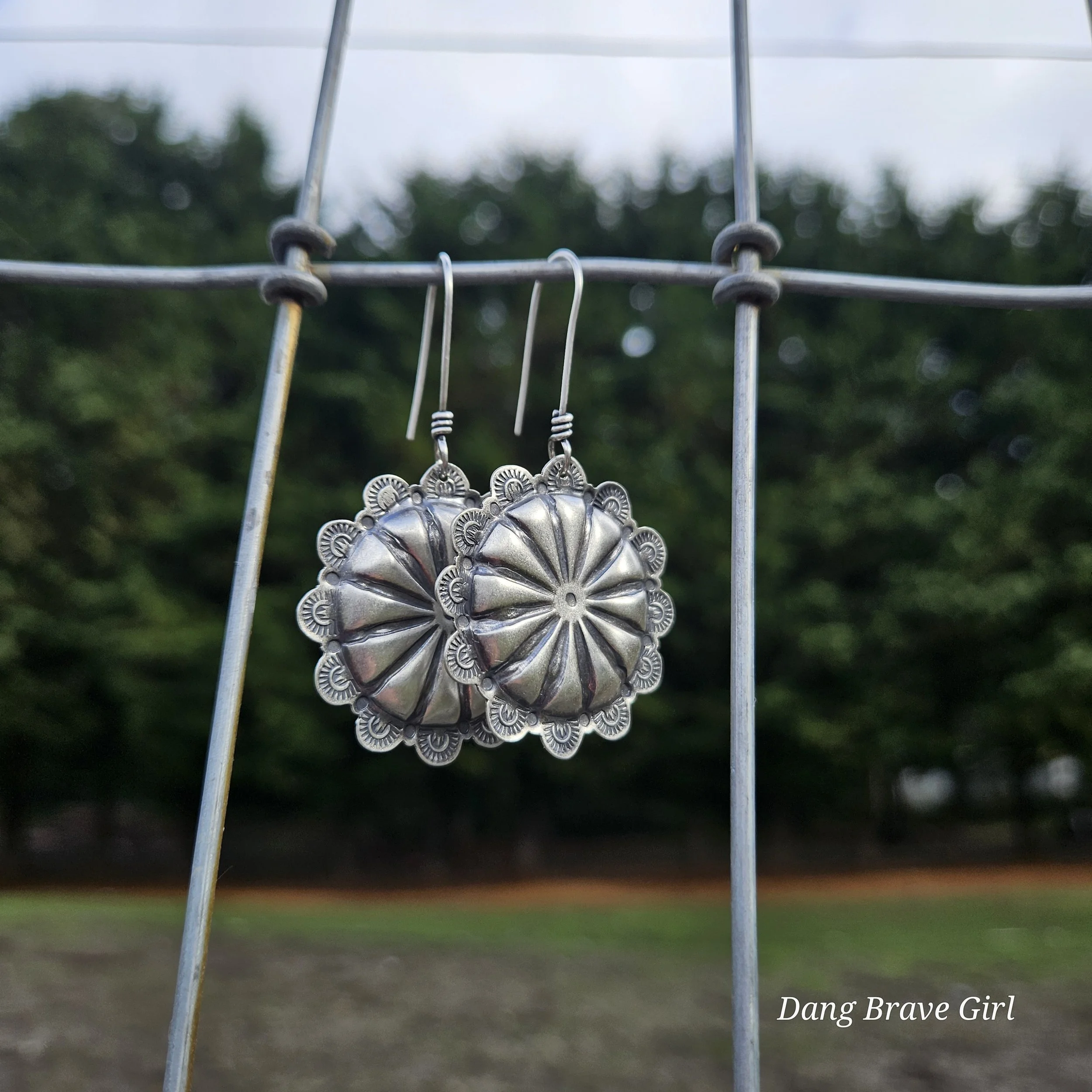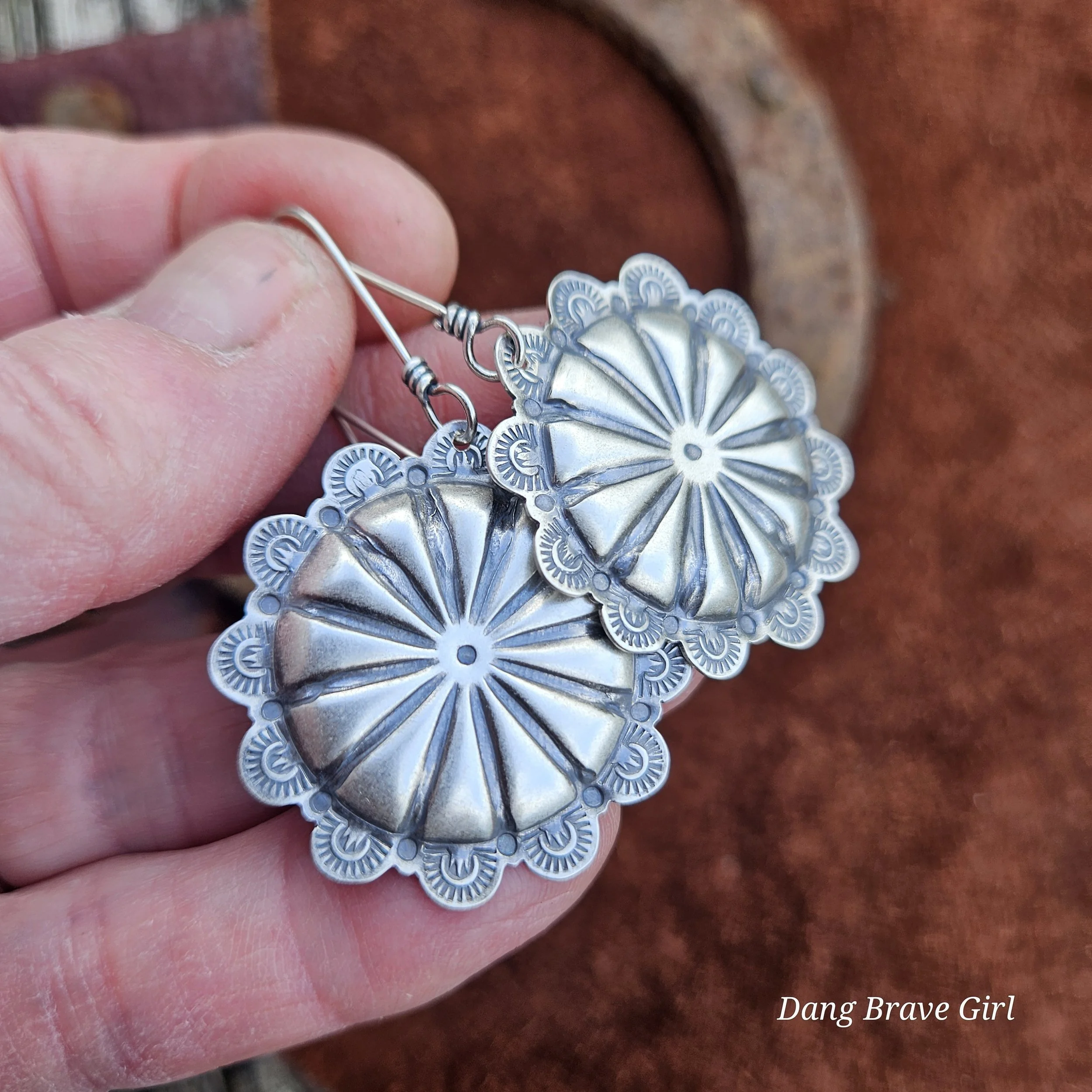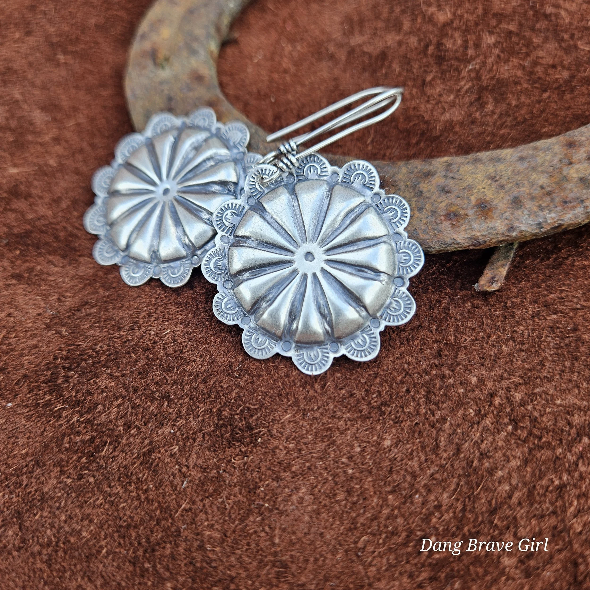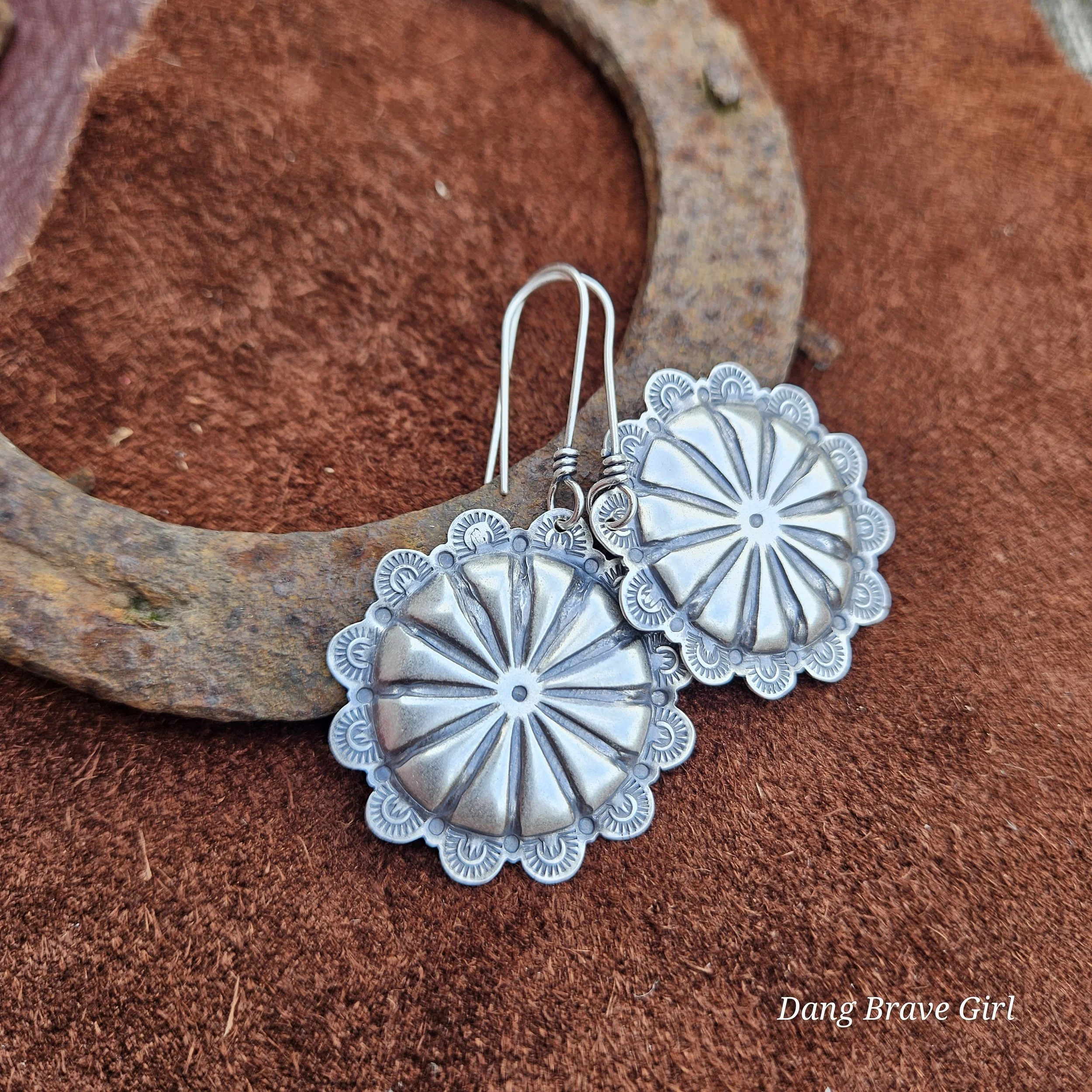 These are some ole southwestern flowers for your ears. Made with sterling silver, hand stamped details and a lot of love (and a bit of muscle).