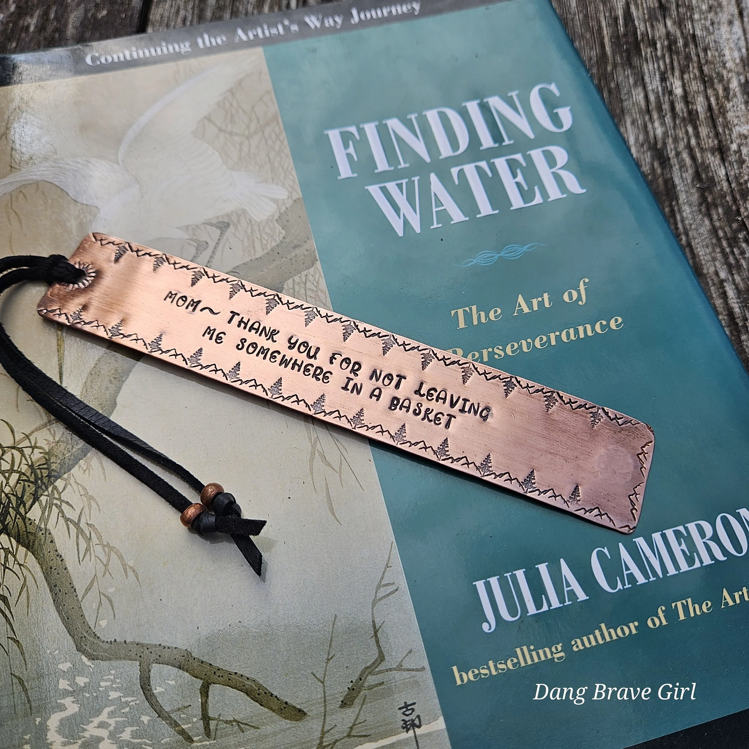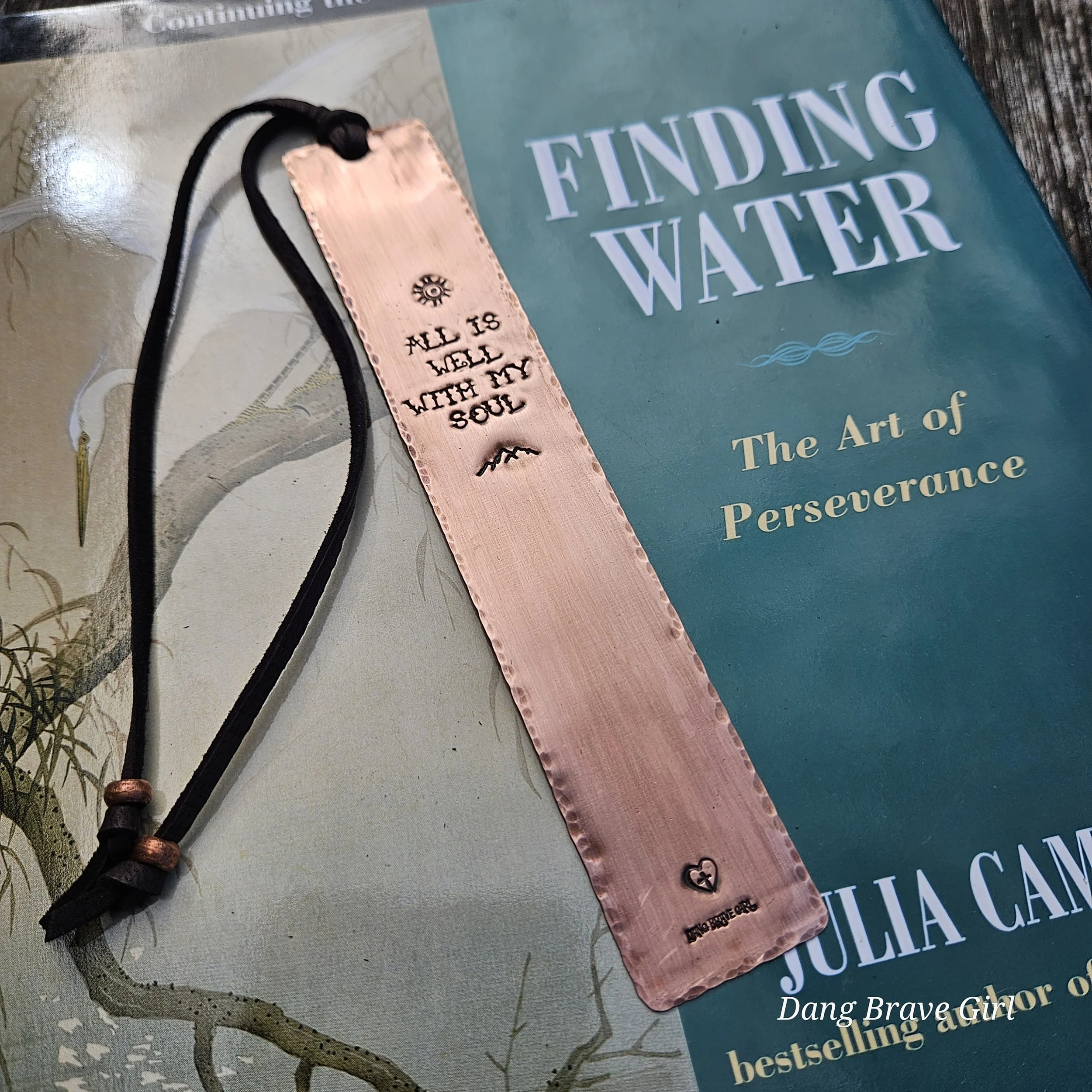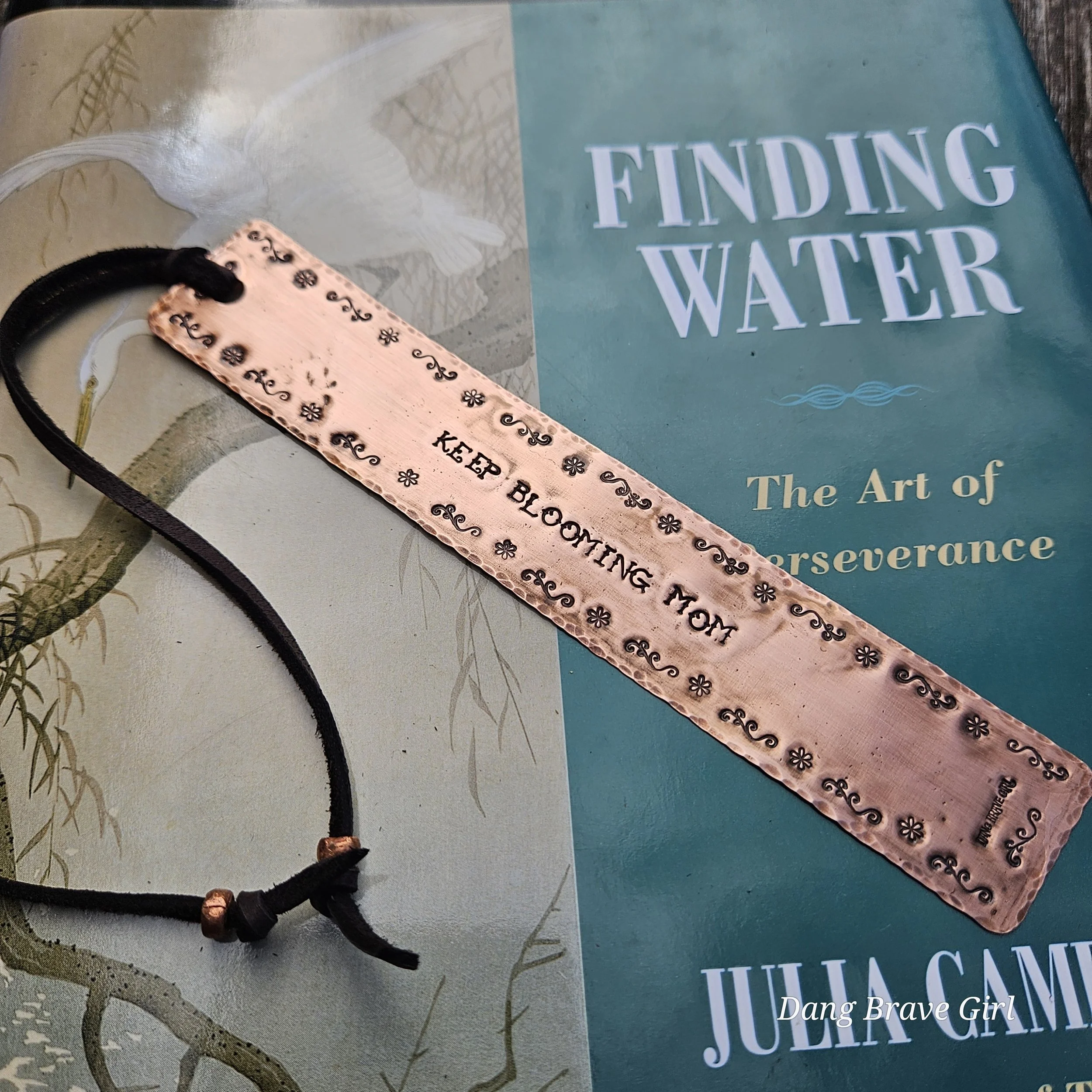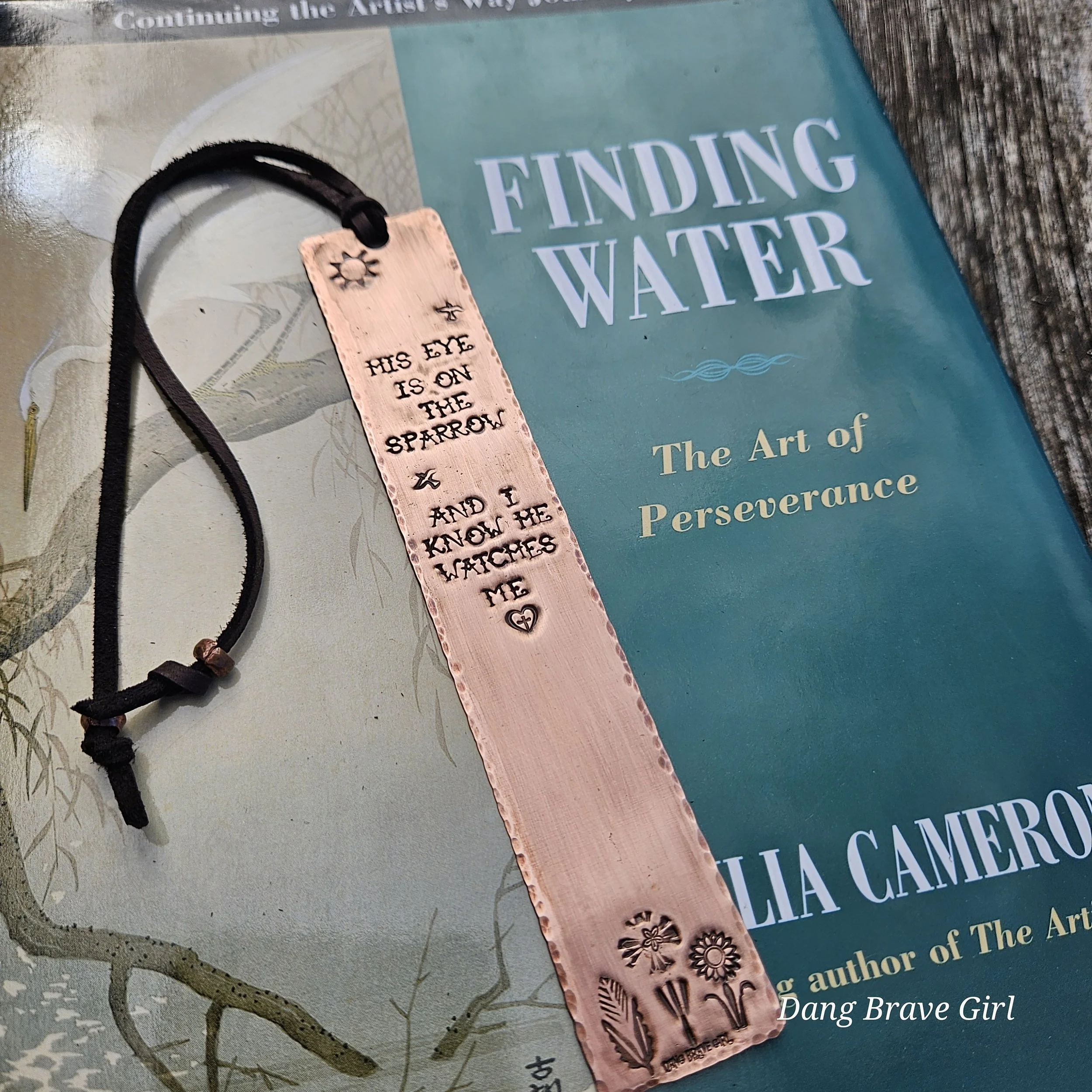 They measure 6” - 6 1/2” long and are 1” - 1 1/4” wide. Leather tassels are 4” - 6” long. The finished bookmarks were given a protective coating to help them from tarnishing but with time and regular use, they may take on the gorgeous patina copper is loved for.