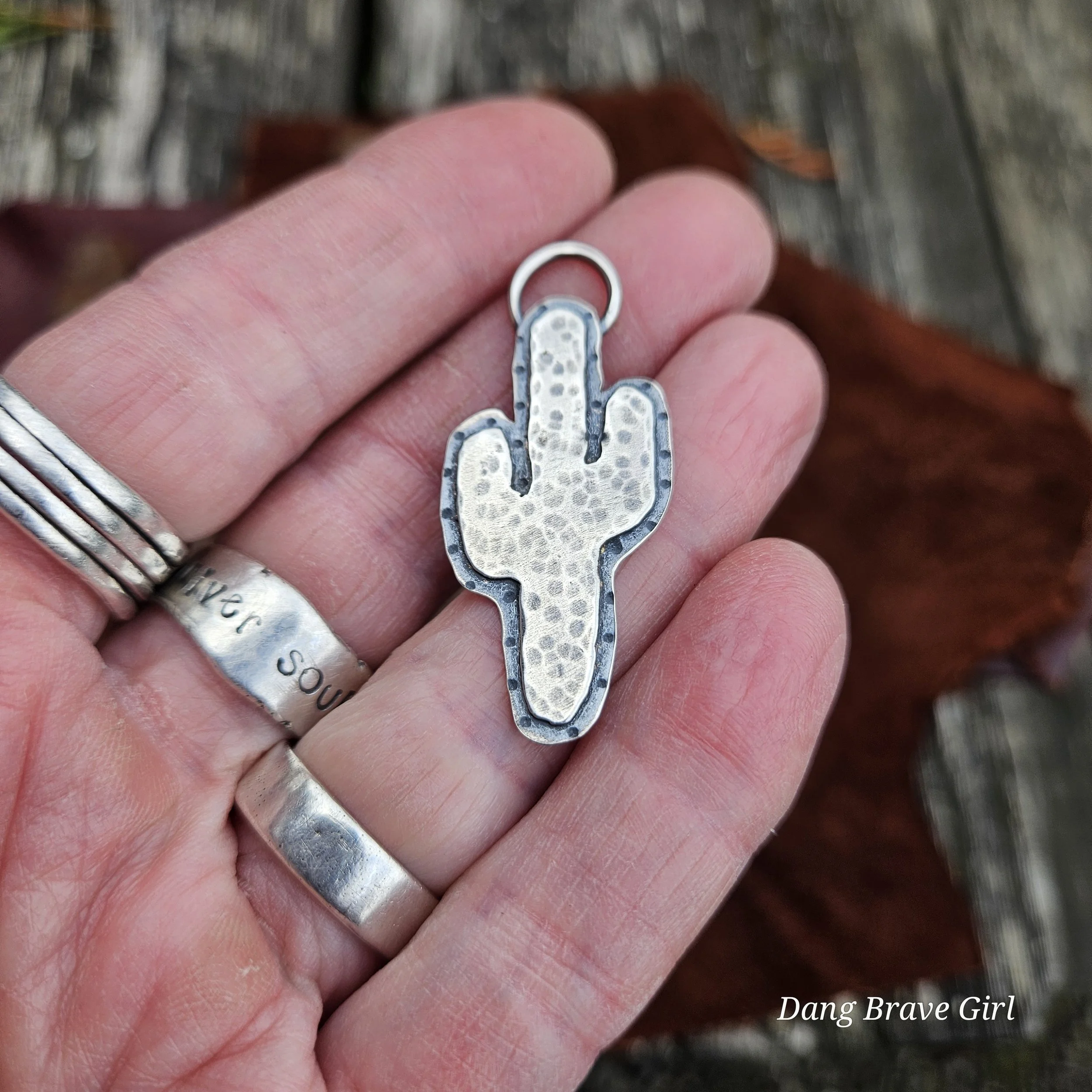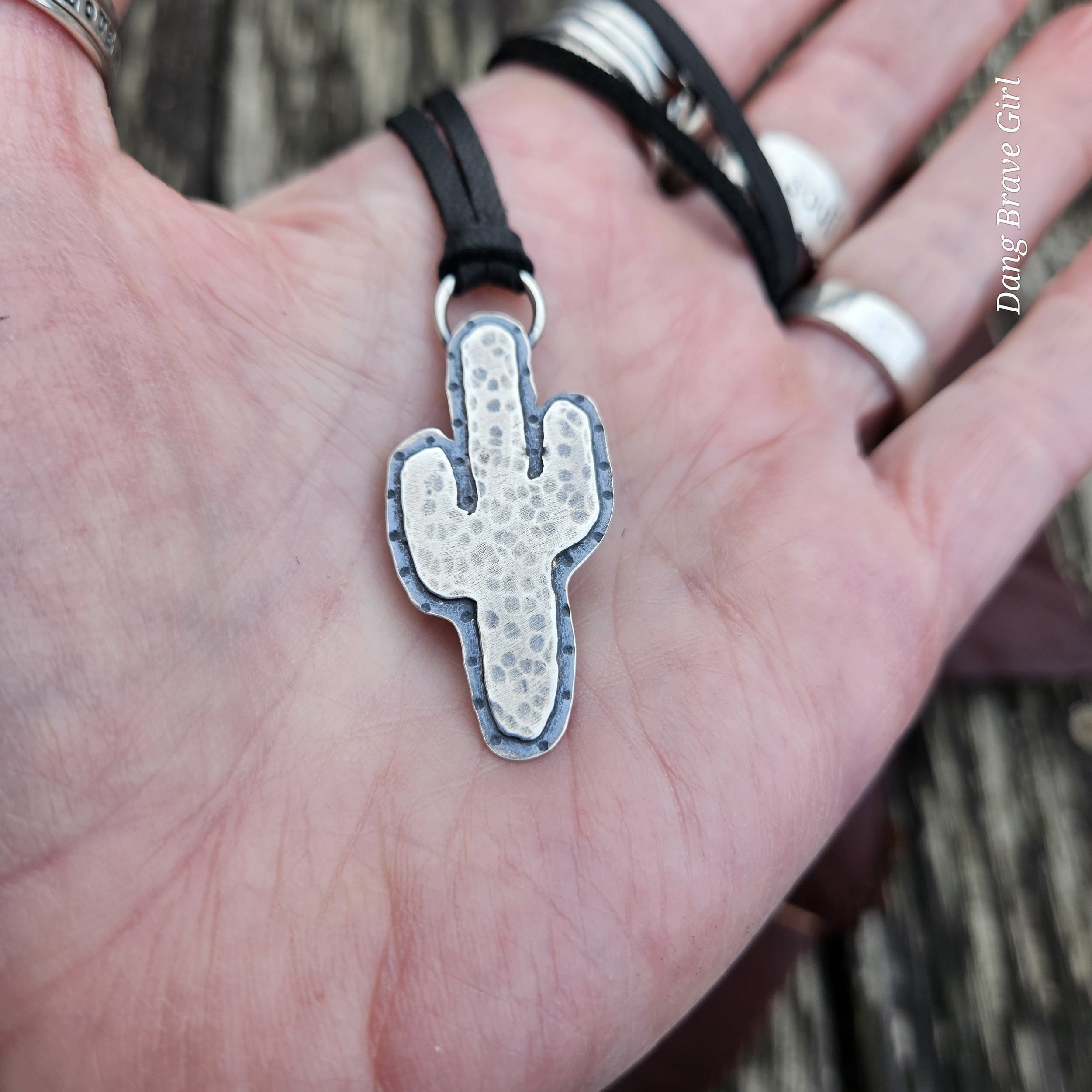Layers of sterling silver, some good texture and the ‘wild’ reminder make this cactus pendant a great everyday piece.