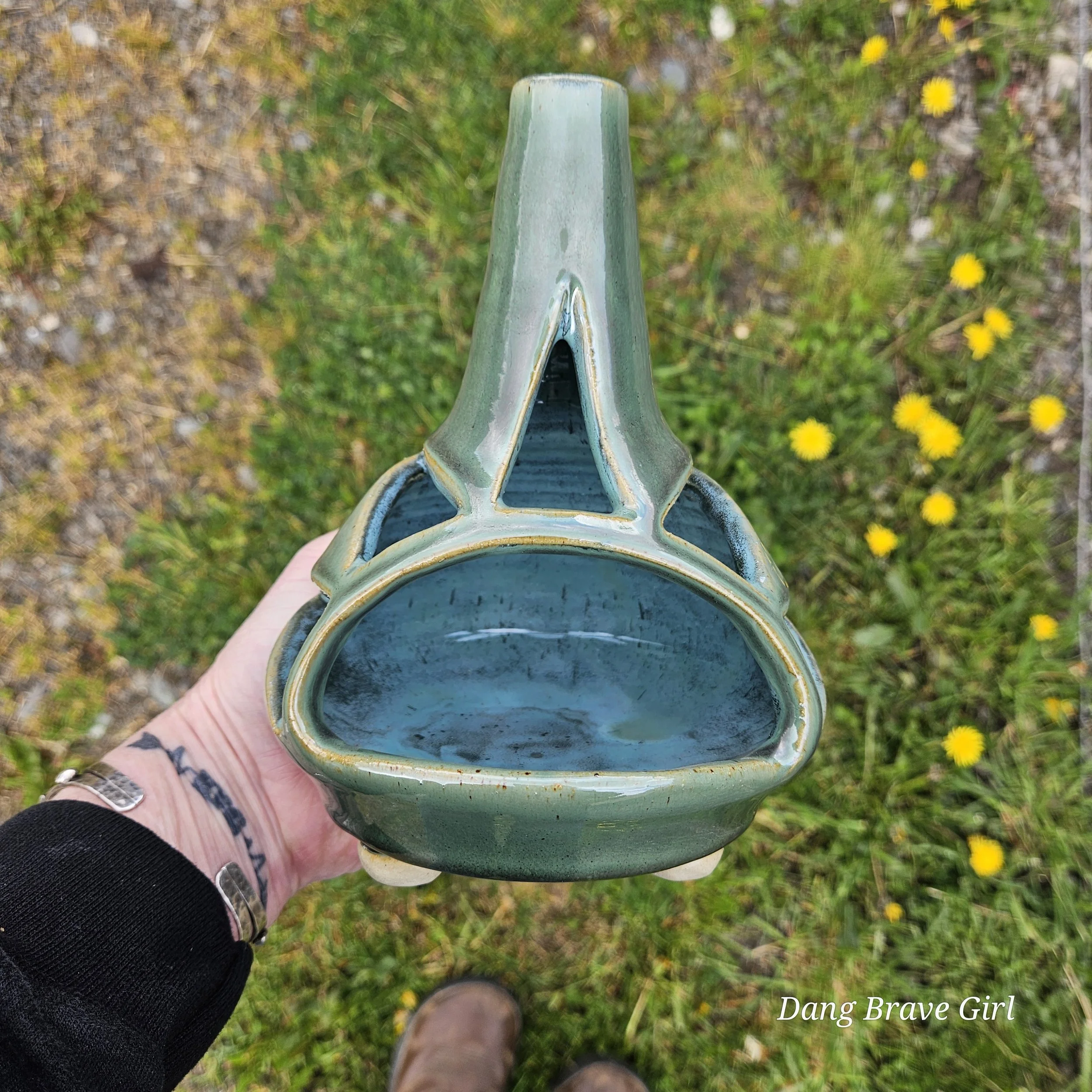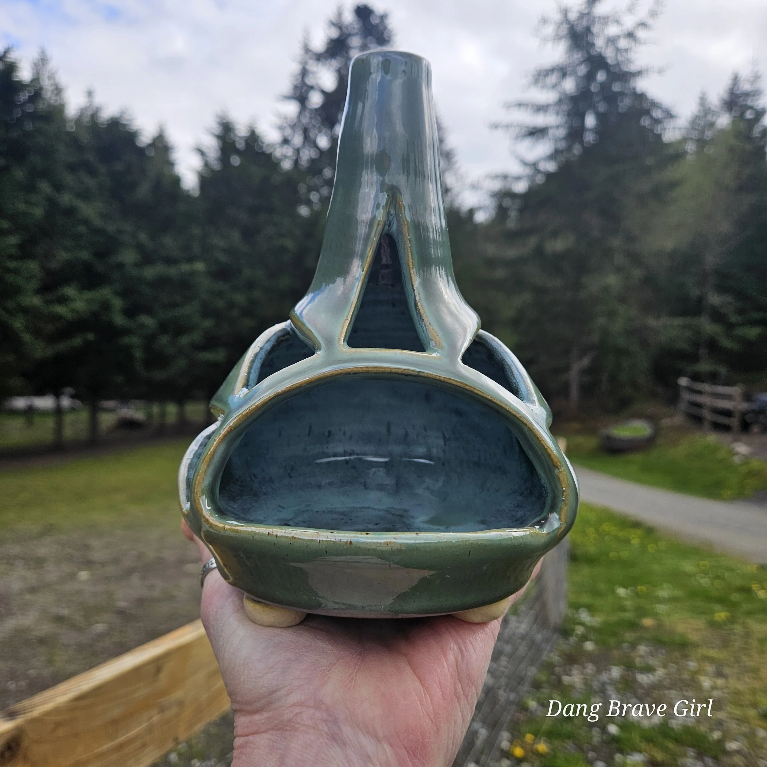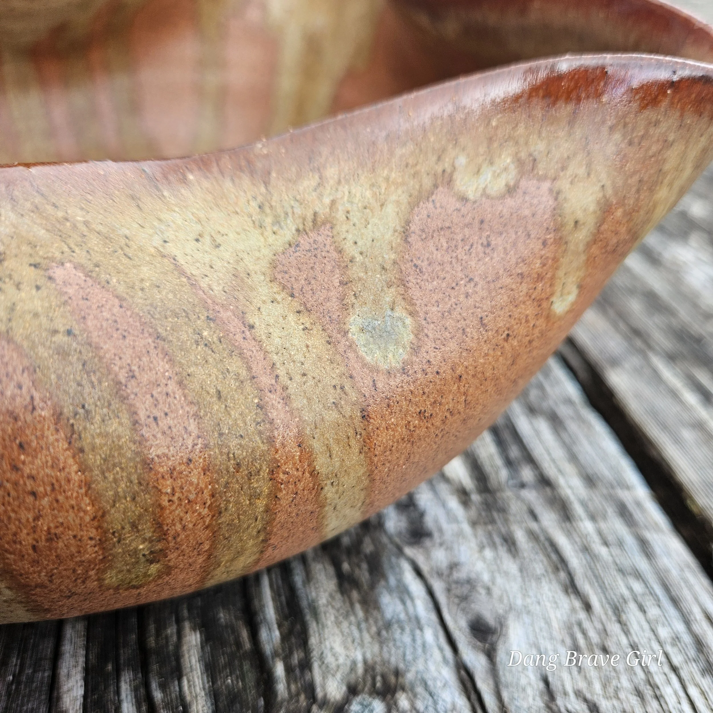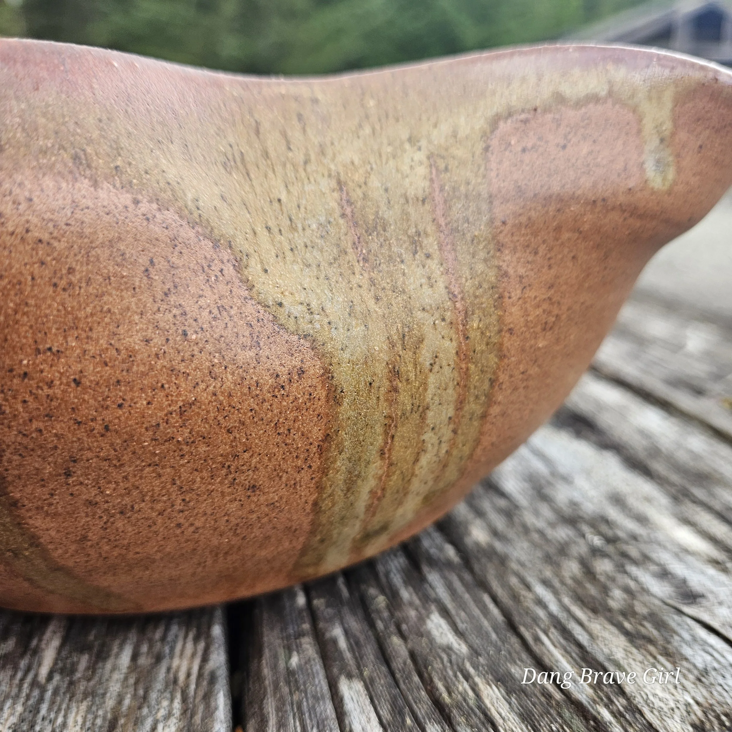 Handmade by the DBH with Oregon Red clay this a work of functional art. I can see this on your dining room or coffee table, maybe on a stack of big books…and of course, you could fill it with a bag of popcorn just to be fancy!