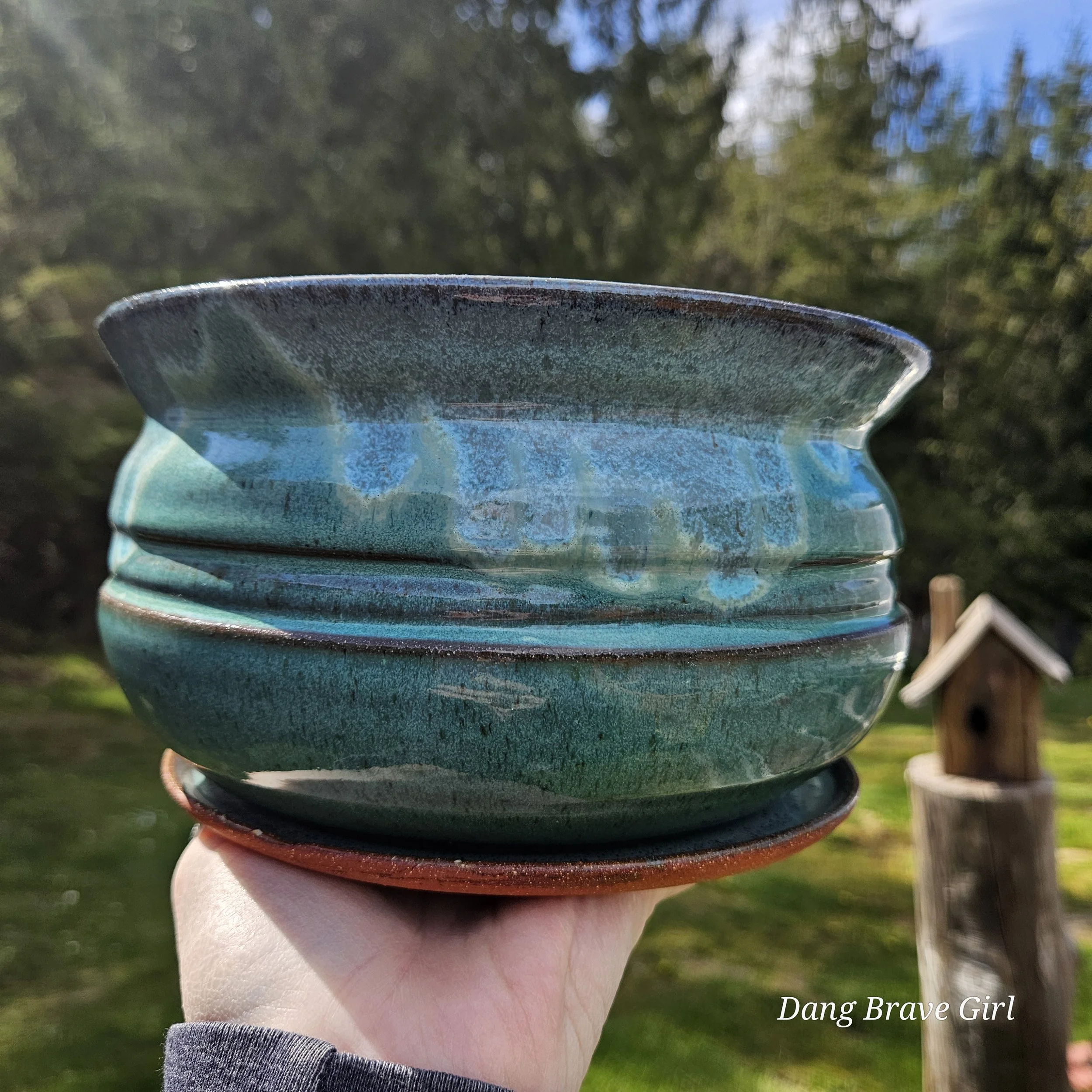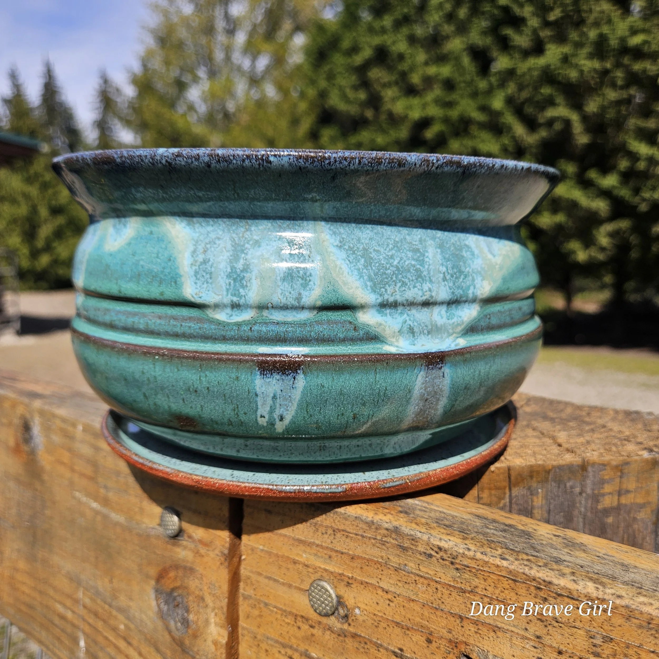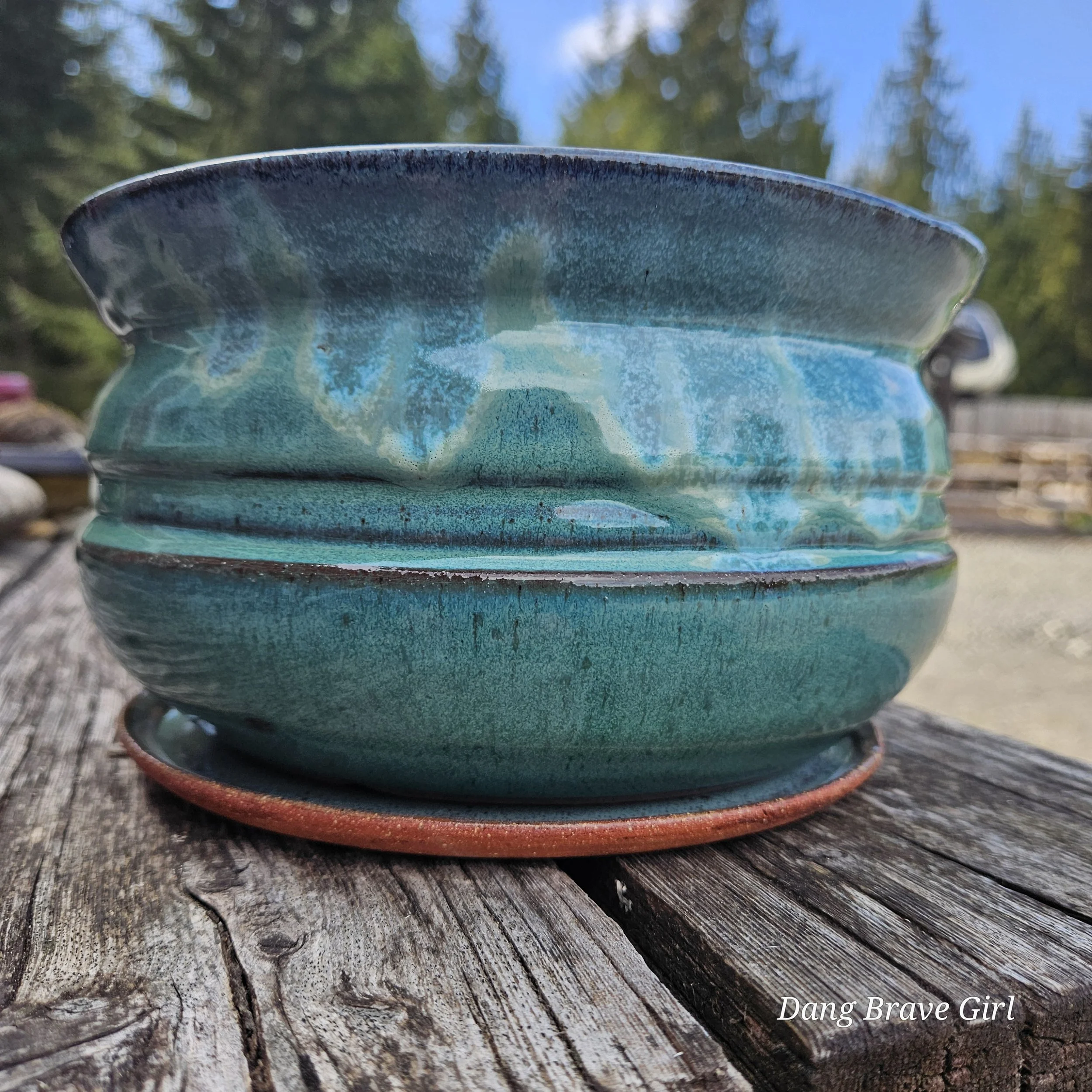 Handmade by the DBH with Oregon Red clay, this planter has a drainage hole, comes with separate drip saucer and is bound to be the prettiest plant holder you have!
