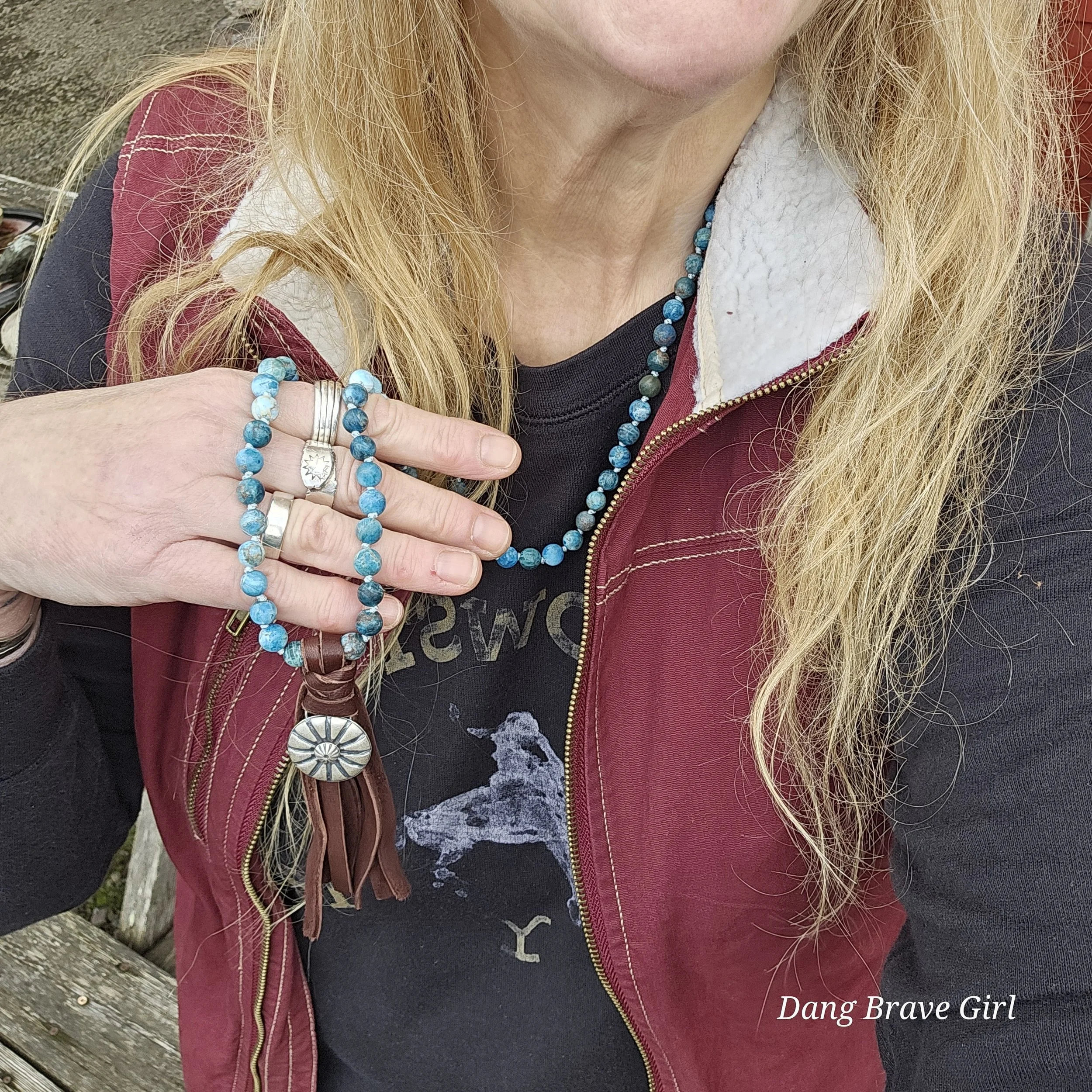 The sterling silver concho pendant is very cool and it’s depth and details are highlighted by a rich patina and soft polish.