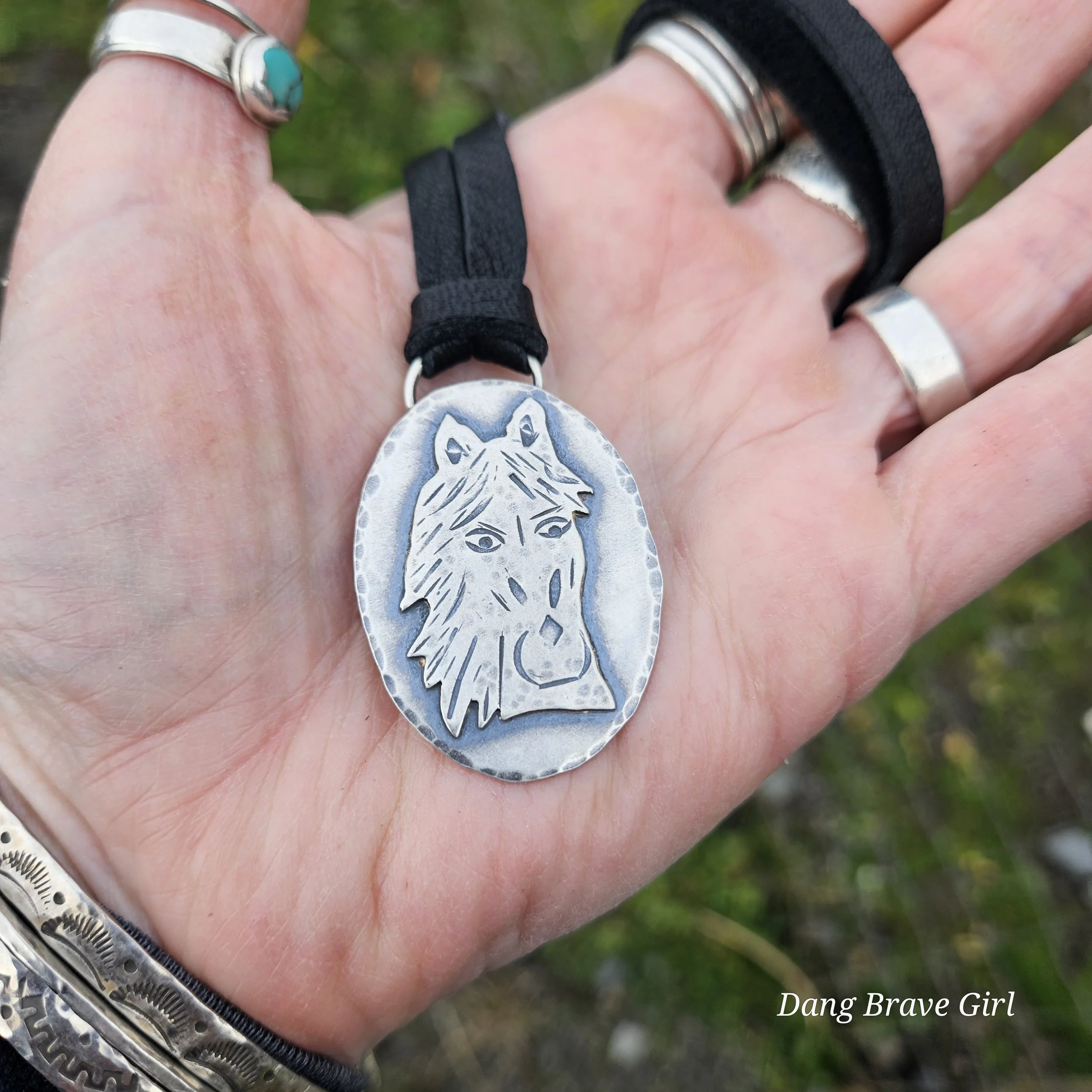 These pendants (there is a second, similar one in separate listing) were inspired by my mom’s two wild mustangs. I have studied their faces, looked at countless pictures of other horses and while I will never claim to be a good drawer, I do think I captured the essence in silver! And it’s harder than it looks!